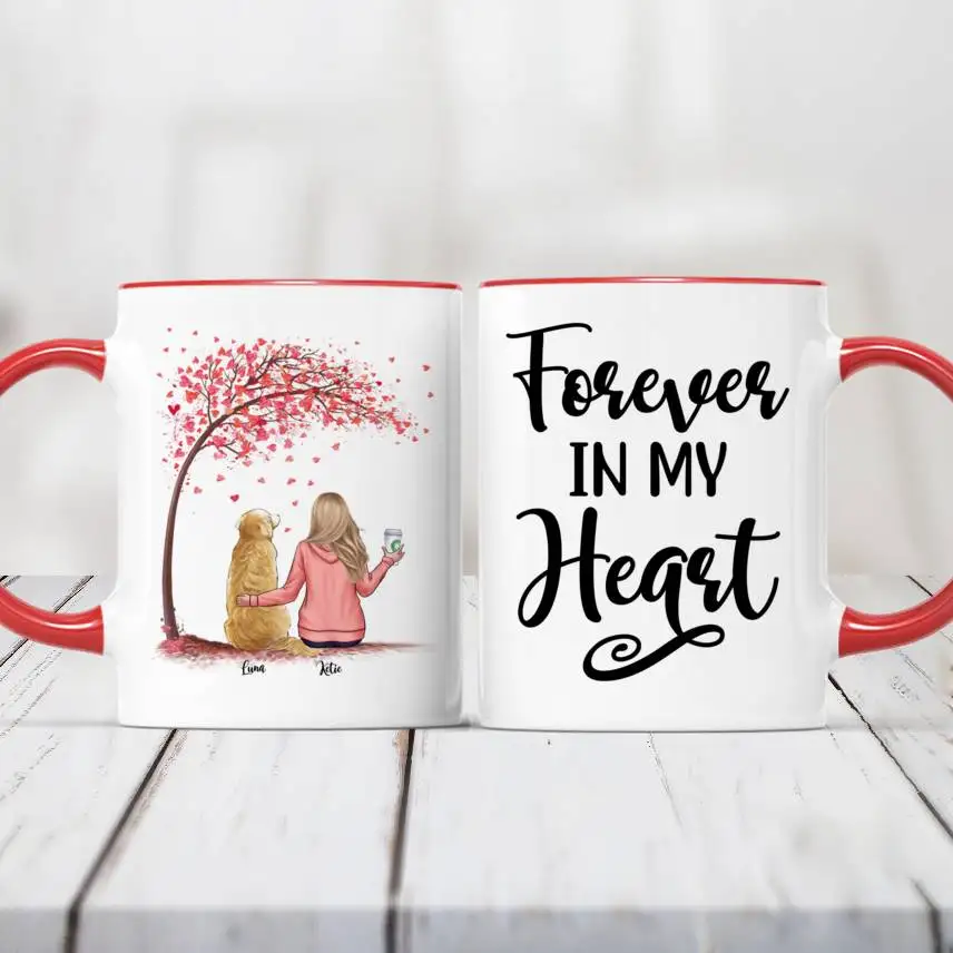 Кружка для кофе, с розовым сердцем, деревом, разноцветная, персонализированная, для девочек и собак, подарок для домашних животных, на заказ, RR2051