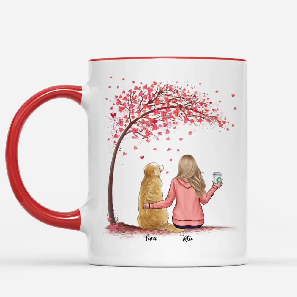 Девушка и кошка собака Осеннее дерево персонализированные кружки лу...
