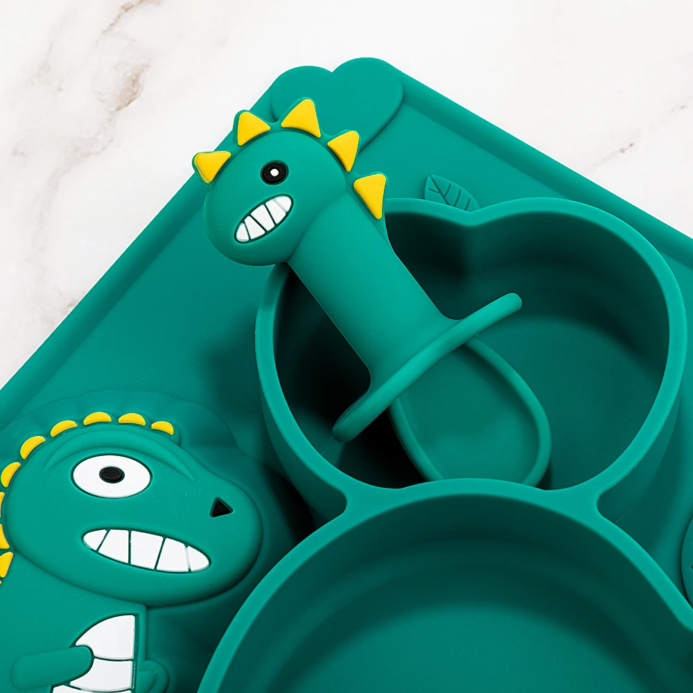 TYRY.HU Детские Силиконовые Обучающие тарелки динозавр мультфильм мягкая ложка для кормления обучающая посуда набор детской посуды