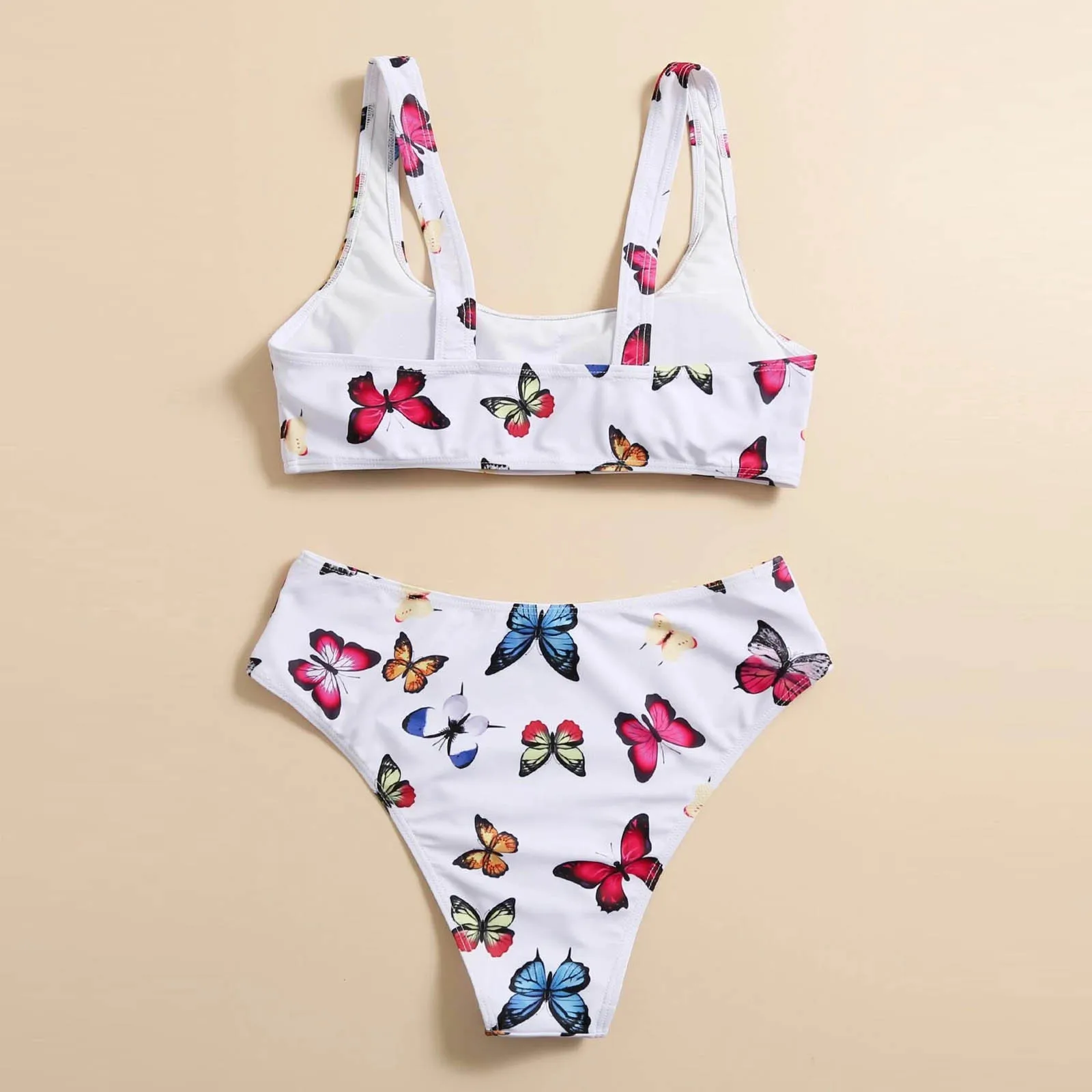 Летний женский раздельный купальник с принтом бабочки, пикантный бандажный бикини, бразильский купальник, пляжный купальник, 2021 #38