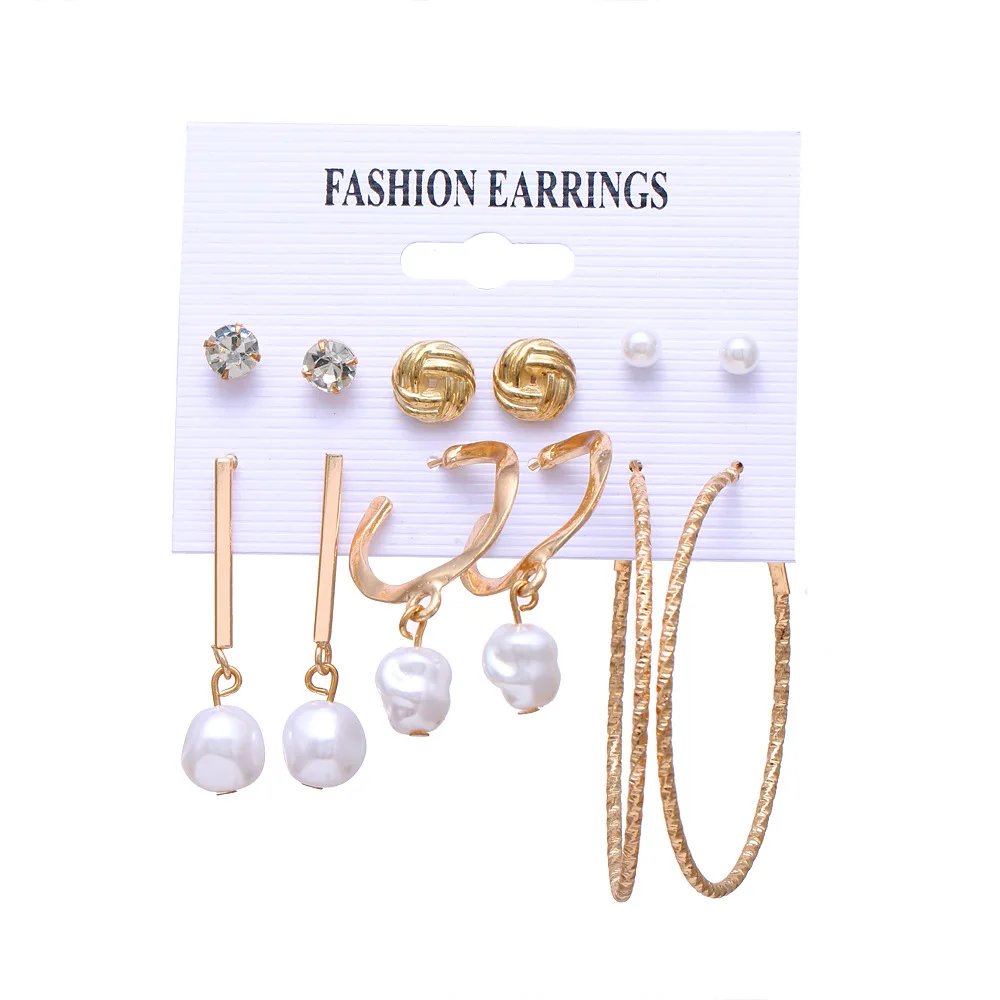 EN винтажные Модные круглый жемчужные серьги, набор богемных геомет...