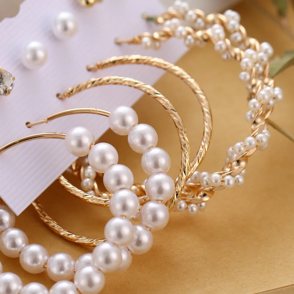 Набор женских серег, серьги-кольца с жемчугом, акриловые, богемные, 2021, корейский, геометрической формы