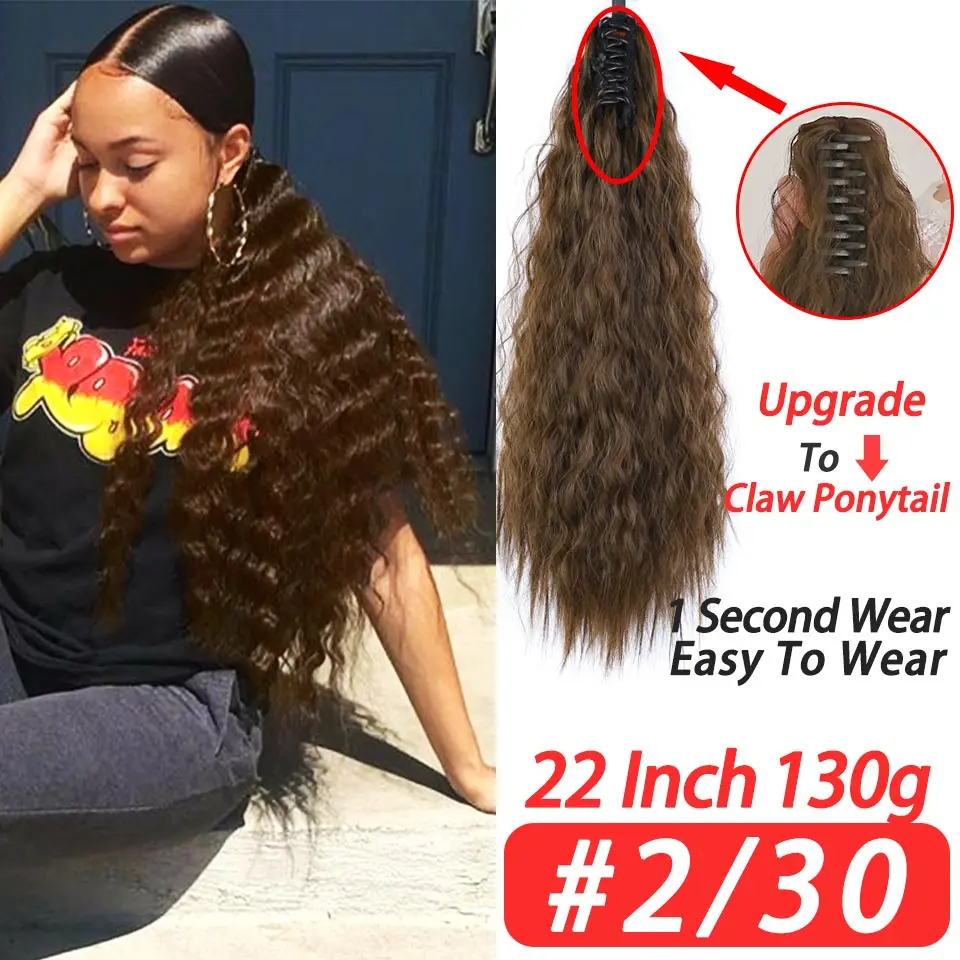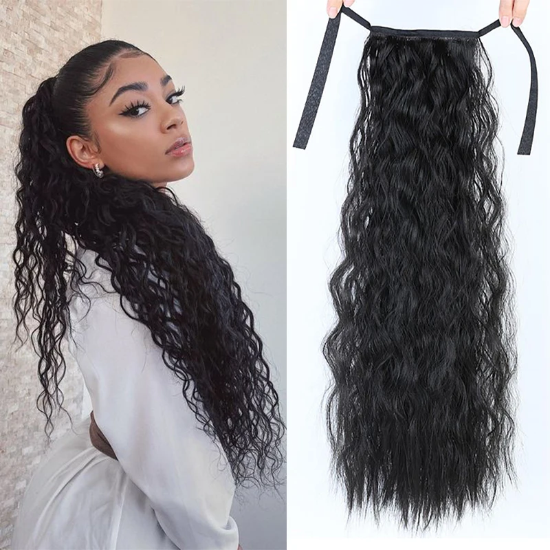 22-дюймовый муляж булочка клип в наращивание волос длинные африканские курчавые вьющиеся волосы, прическа "хвост" синтетический шиньон-хвост шиньон для Для женщин