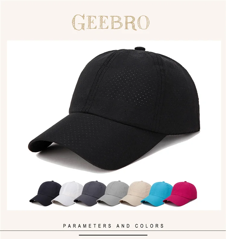 Название продукта: Кепка Geebro унисекс Повседневная Регулируемая прочная тонкая сетчатая портативная быстросохнущая дышащая защита от солнца, бейсболка, кепка хип-хоп Уличная шляпаРазмер изделия: для взрослыхМатериал изделия: полиэстерСезон: Весна/лето/осень/зимаЦвет: 9 цветов s