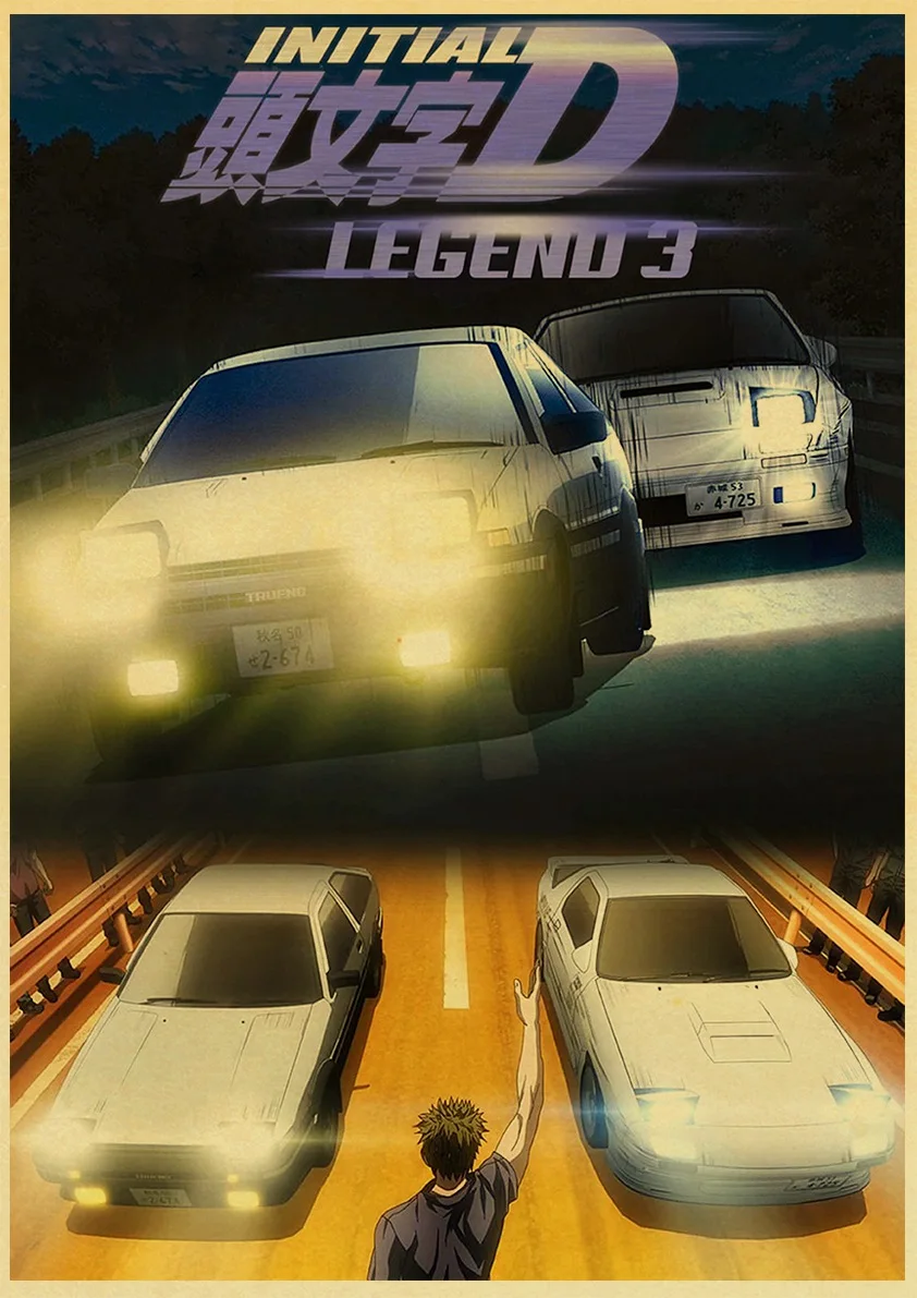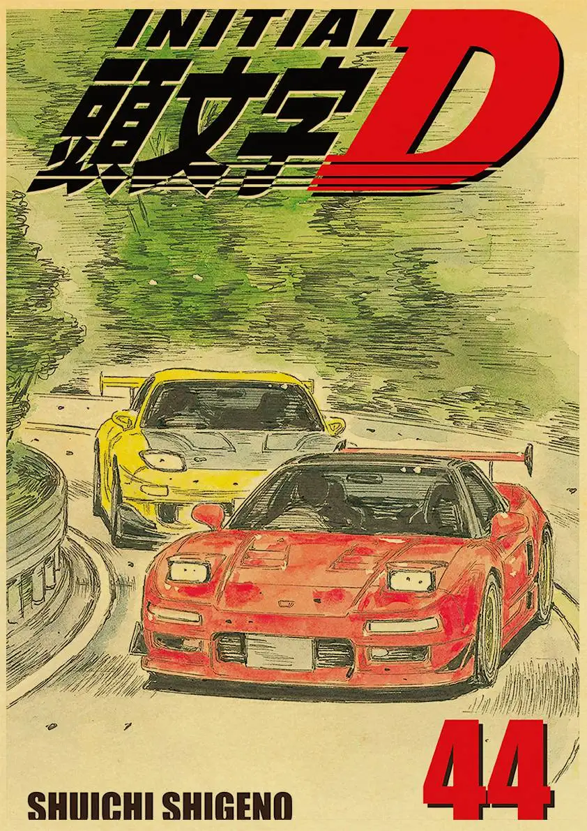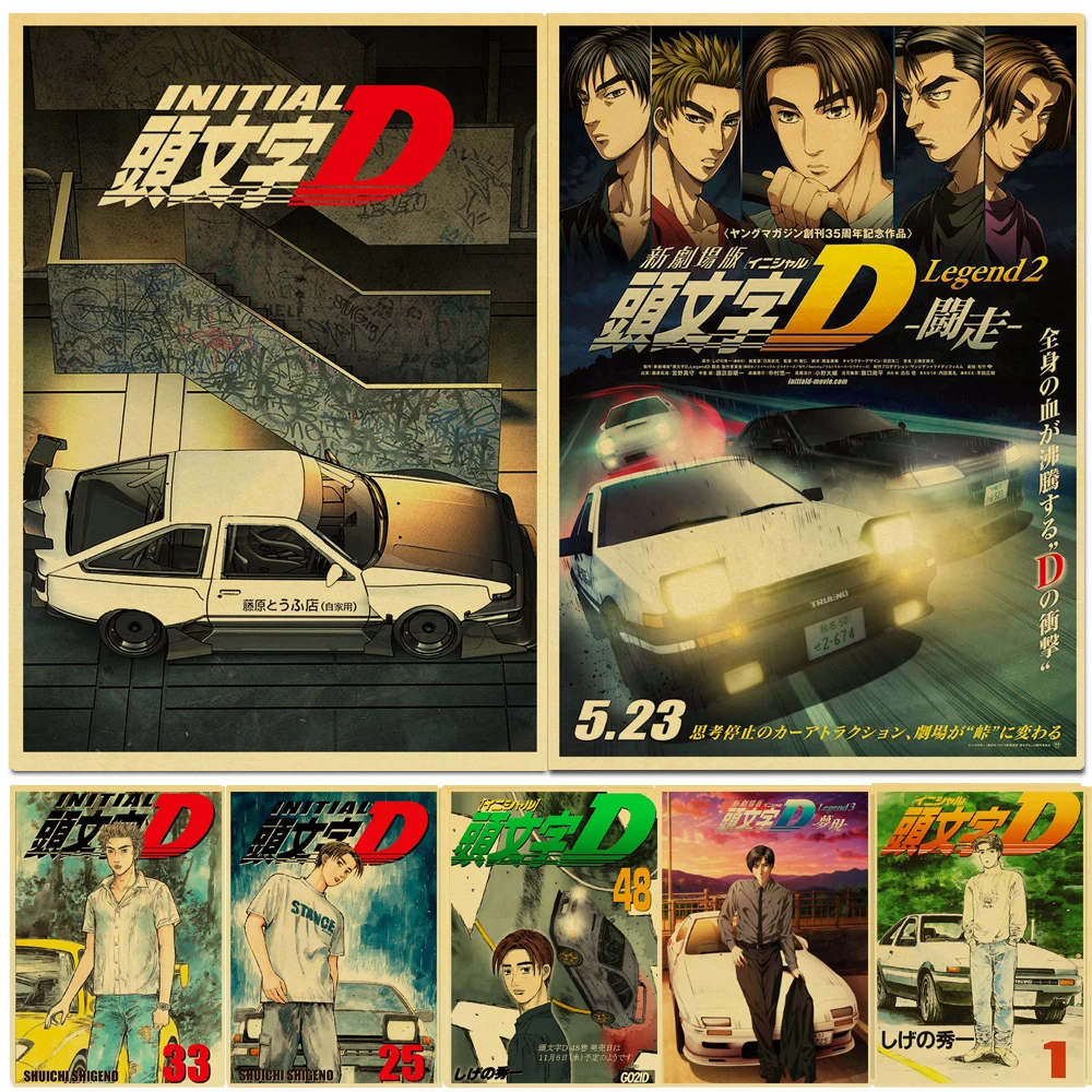 Винтажные постеры Initial D из японского аниме, Постер HD из крафт-бумаги, домашний декор, настенные картины для кабинета, спальни, бара, кафе