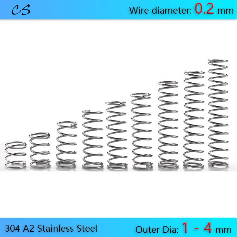 10 шт. 0,2 мм компрессионная пружина 304 A2 нержавеющая пружина проволока диаметром 0,2 мм внешний диаметр 1 1,2 1,5 2 1,8 3 2,5 4 мм длина 5 - 30 мм
