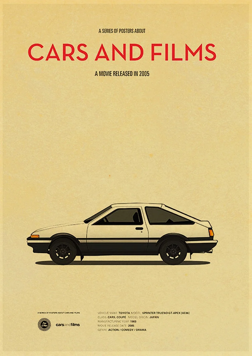 Японские гоночные аниме постеры с инициалами, коллекционные постеры...