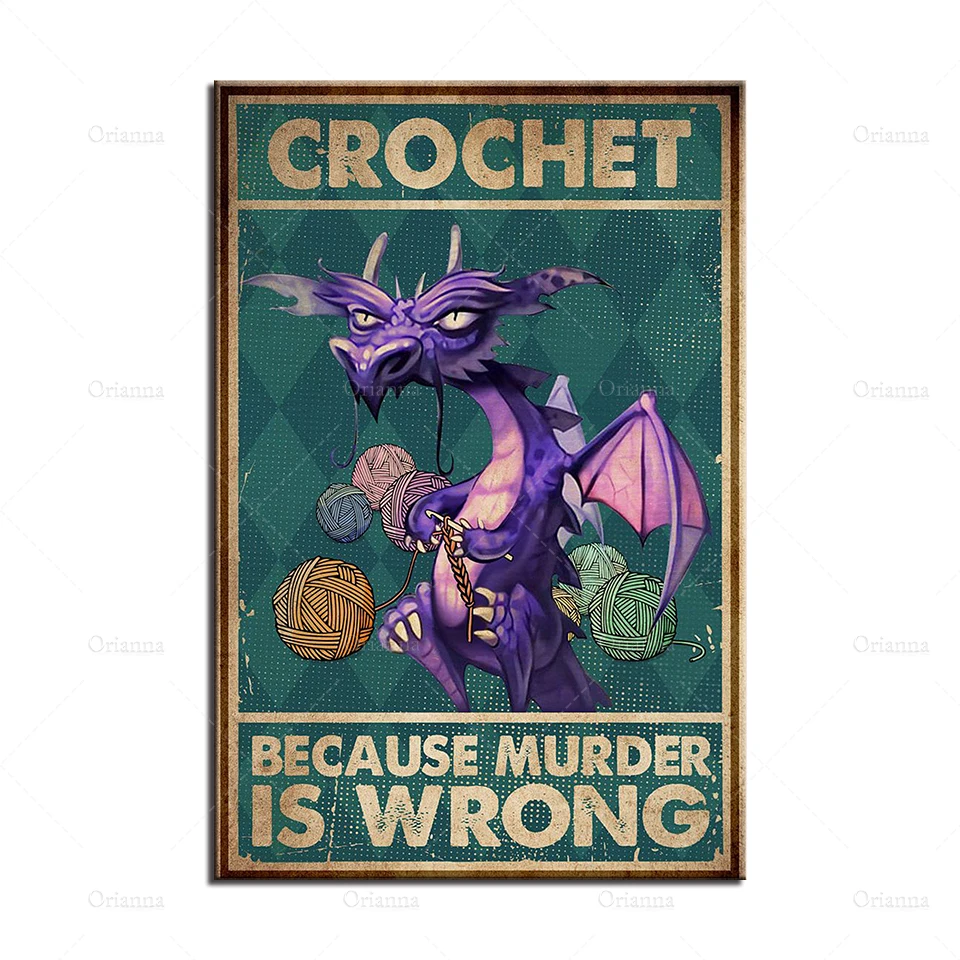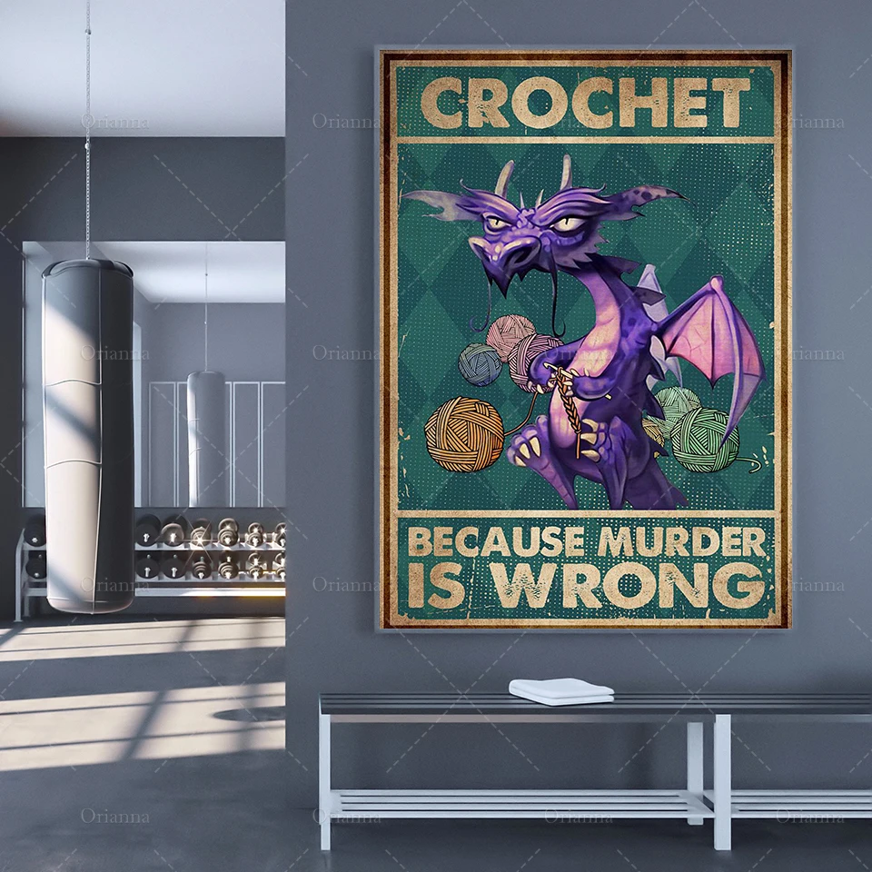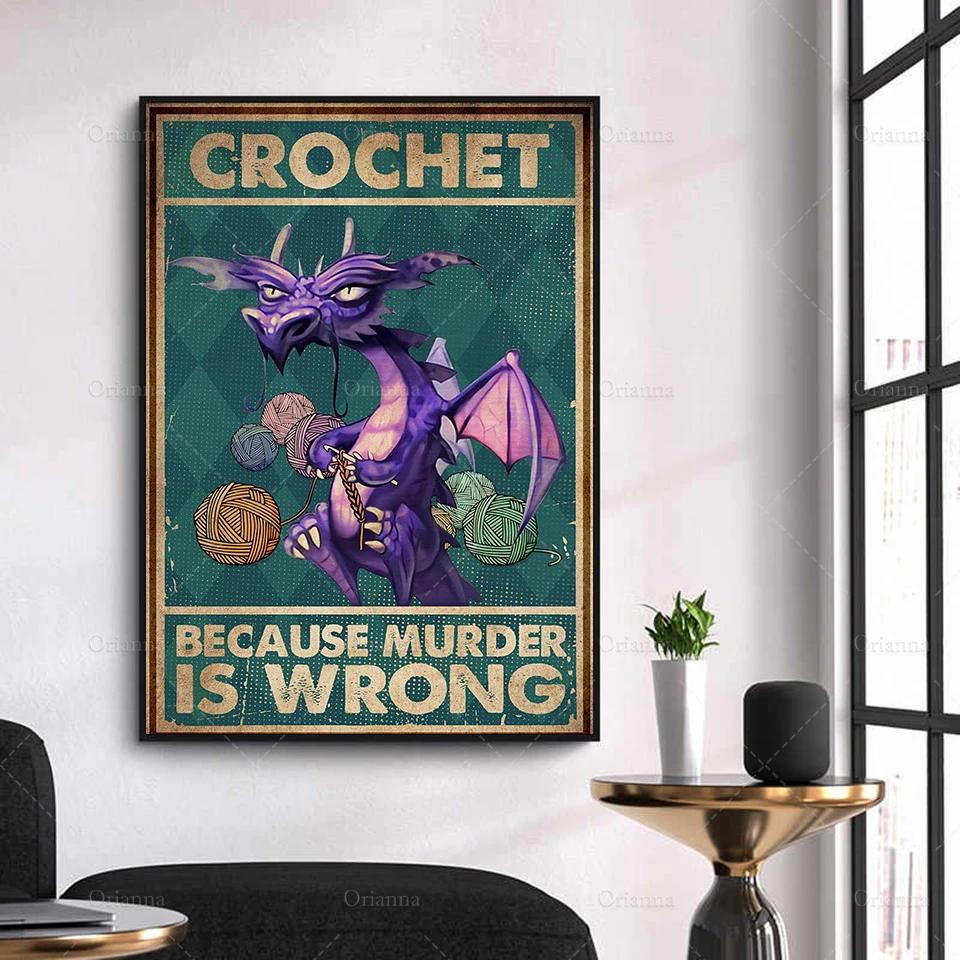 Вязание крючком, потому что убийца неправильный вертикальный плакат, фиолетовый дракон, вязаные настенные художественные принты, холст, Современный домашний декор, уникальный подарок