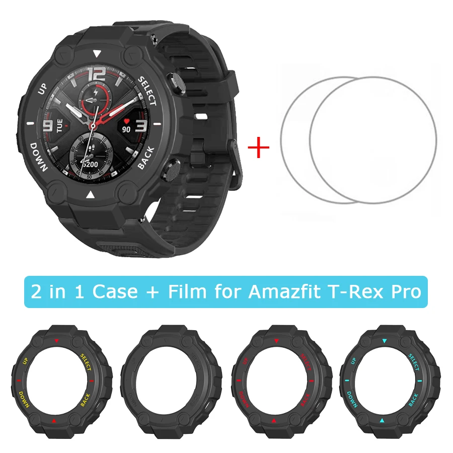 Защитный чехол 2 в 1, бампер + Защитная пленка для экрана, закаленное стекло для Huami Amazfit T-REX Pro, аксессуары для смарт-часов