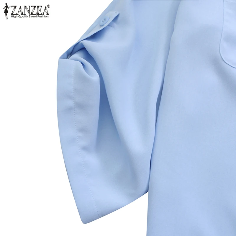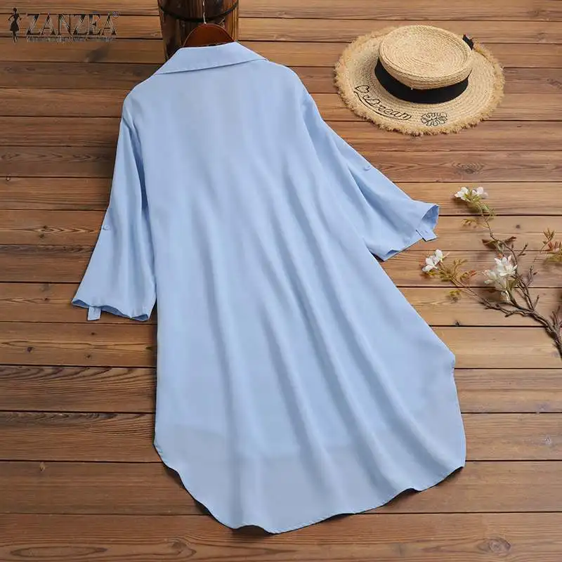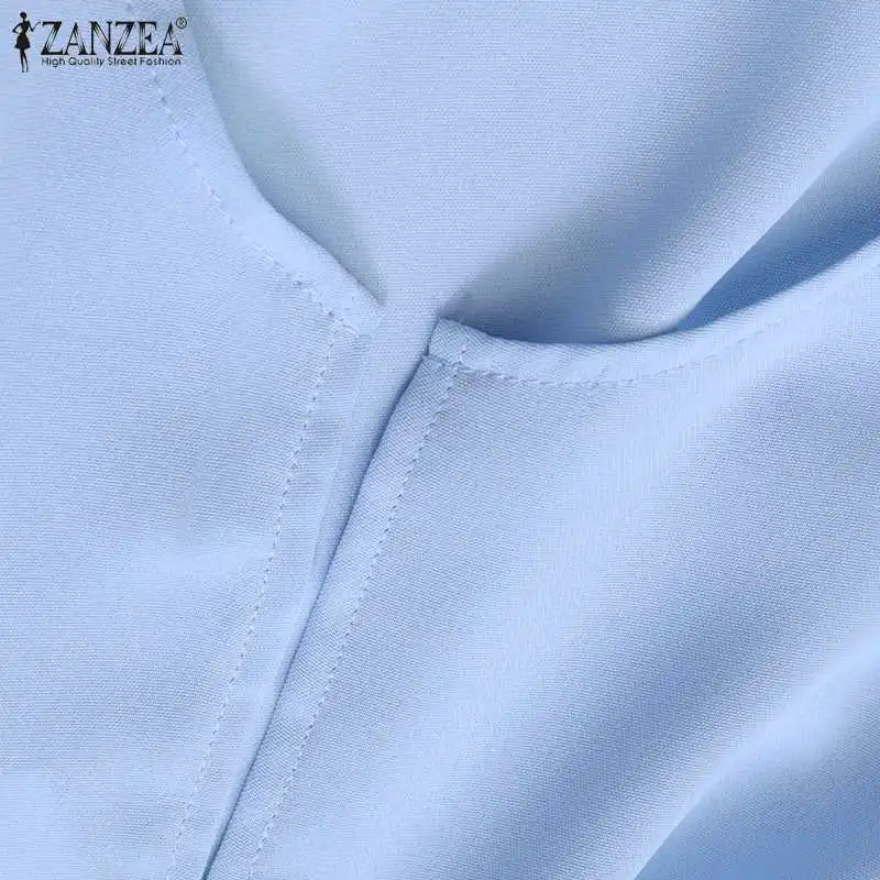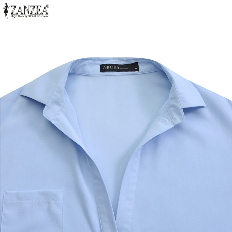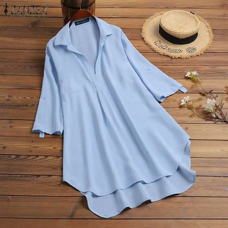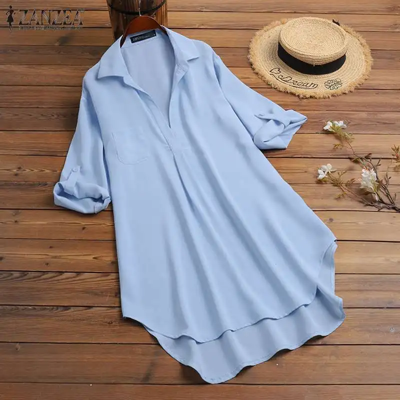 Асимметричный свободный пуловер ZANZEA, Женская однотонная блуза с отворотом, Офисная Женская Повседневная Элегантная блузка для работы, модная летняя блузка оверсайз 2021