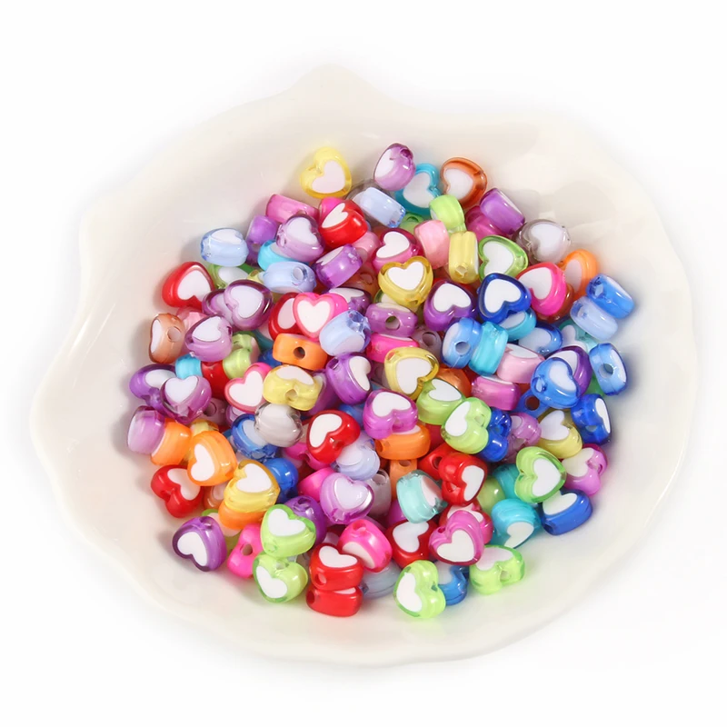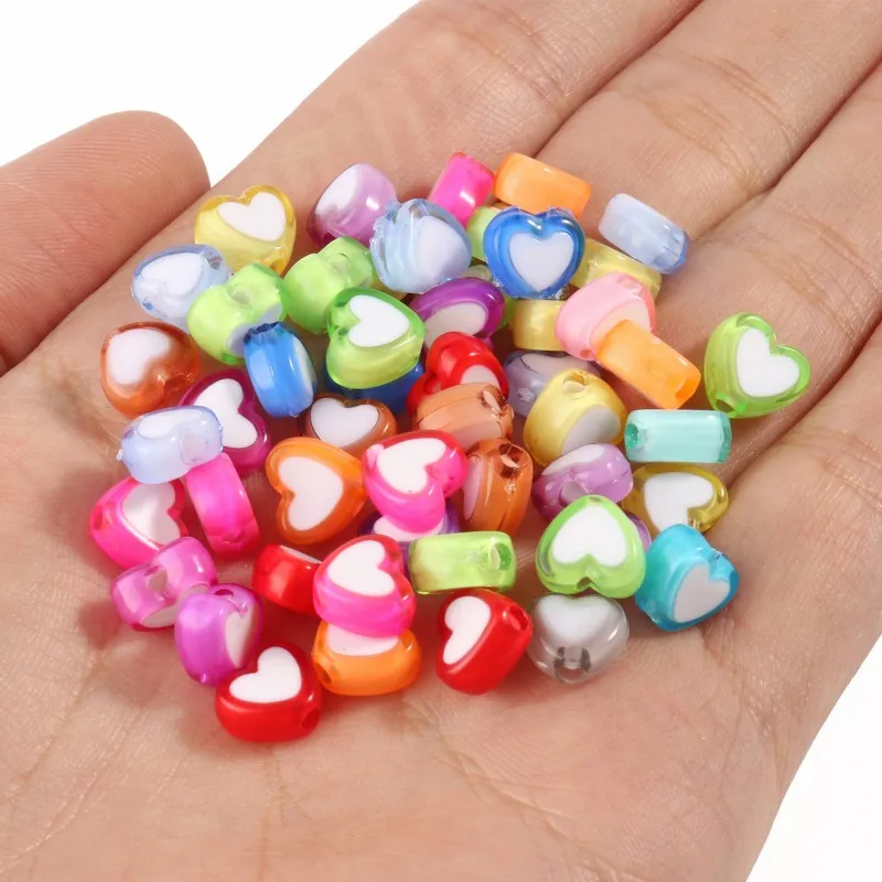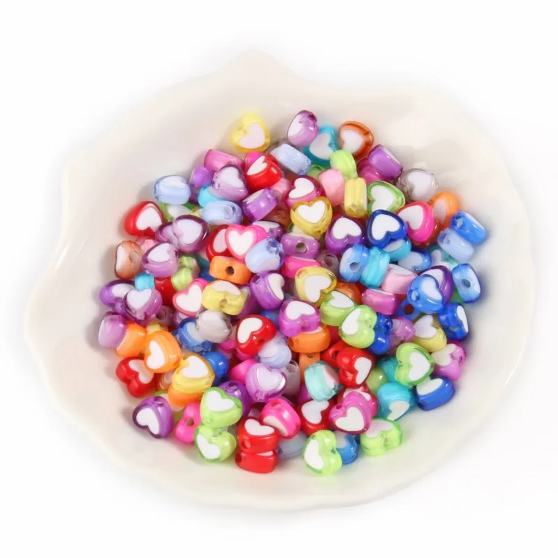 Разноцветные акриловые бусины, 8*7*4 мм, в форме сердца, насыпью, для изготовления украшений вручную, браслетов, ожерелий сделай сам