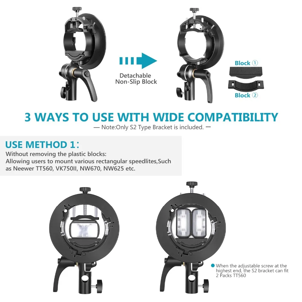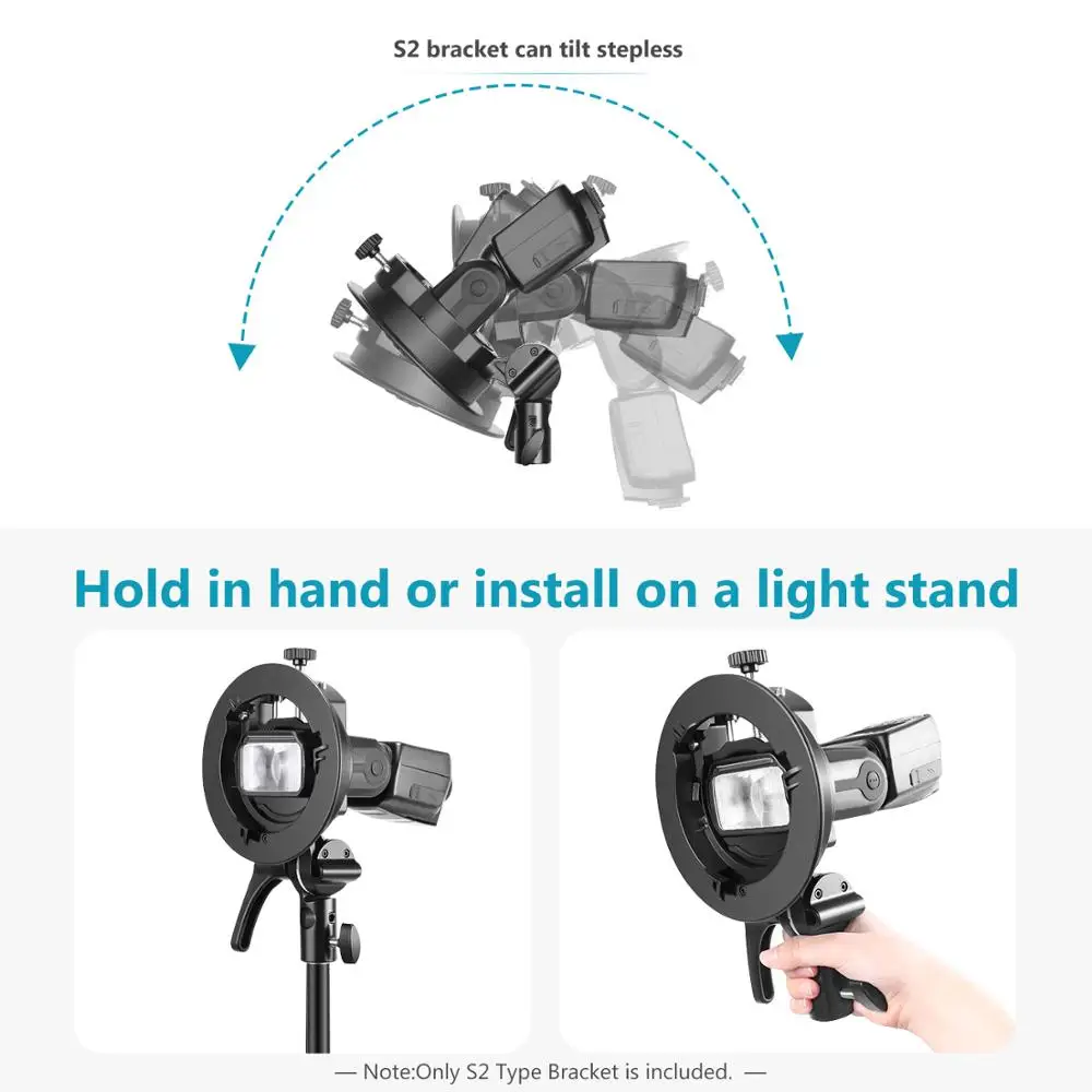 S-образный кронштейн Neewer S2 для вспышки с креплением Bowens, держатель для вспышки подходит для Neewer 750II NW670 и т. д., точное управление наклоном