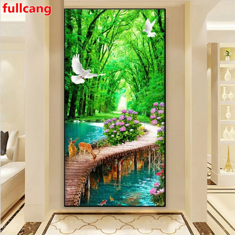 Diy 5d большой Алмазная мозаика природный пейзаж, картина, выложенная алмазами водопад олень вышивка крестиком вышивка полный дрель домашний арт JX2069