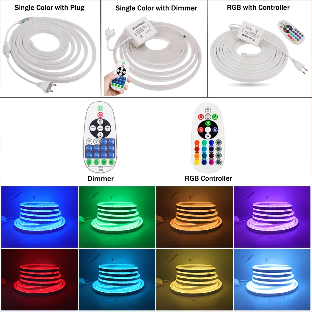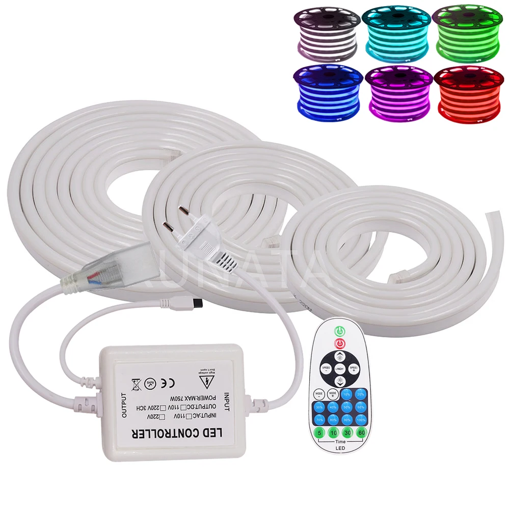 220В RGB неоновый светильник, светодиодный светильник в полоску с дистанционным диммером, гибкий неоновый шнур, водонепроницаемая неоновая вывеска, Диодная лента для украшения, штепсельная вилка европейского стандарта