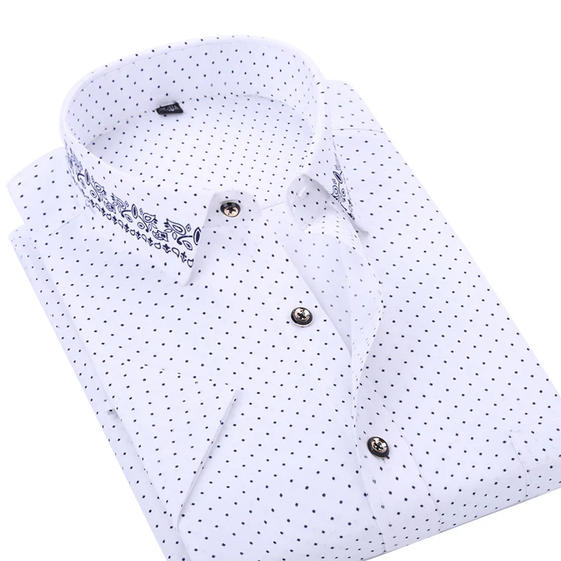 Рубашка AOLIWEN Мужская в горошек, брендовая сорочка с цветочным принтом для отпуска, Повседневная приталенная, на пуговицах, в гавайском стиле, с коротким рукавом