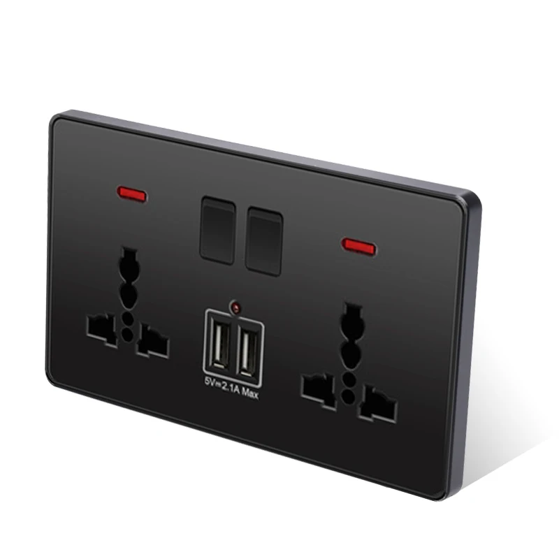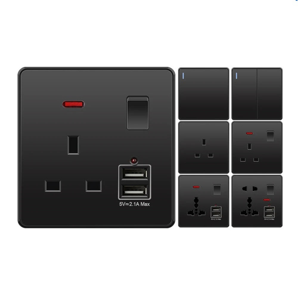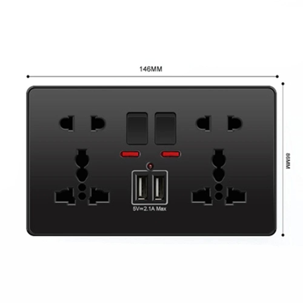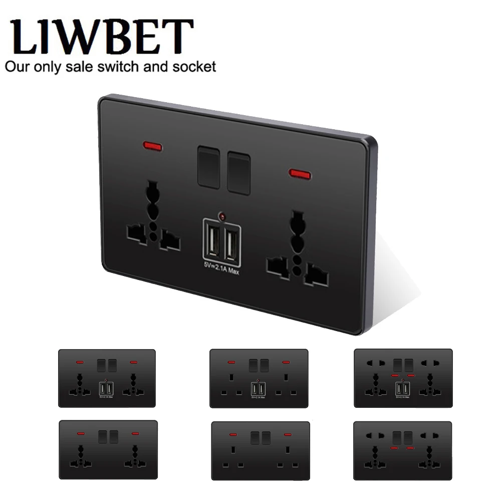 Настенная розетка LIWBET черного цвета с 6 контактами и пластиковой панелью, двойная USB-розетка
