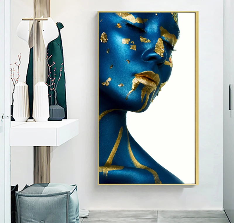 Настенная картина Синяя Золотая женщина в скандинавском стиле, Современная Картина на холсте с изображением сексуальных девушек, Модульная картина на стену, картины для гостиной, домашний декор