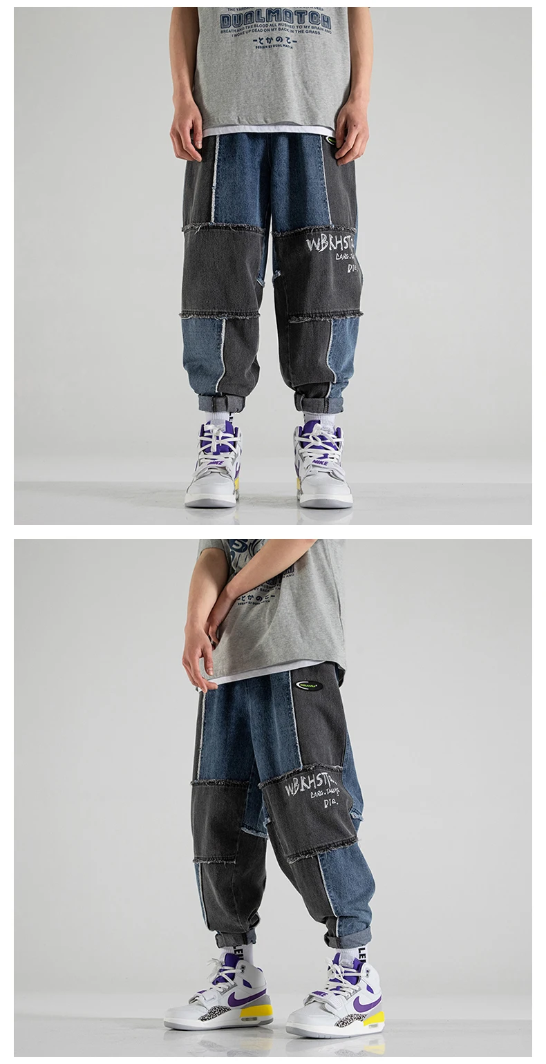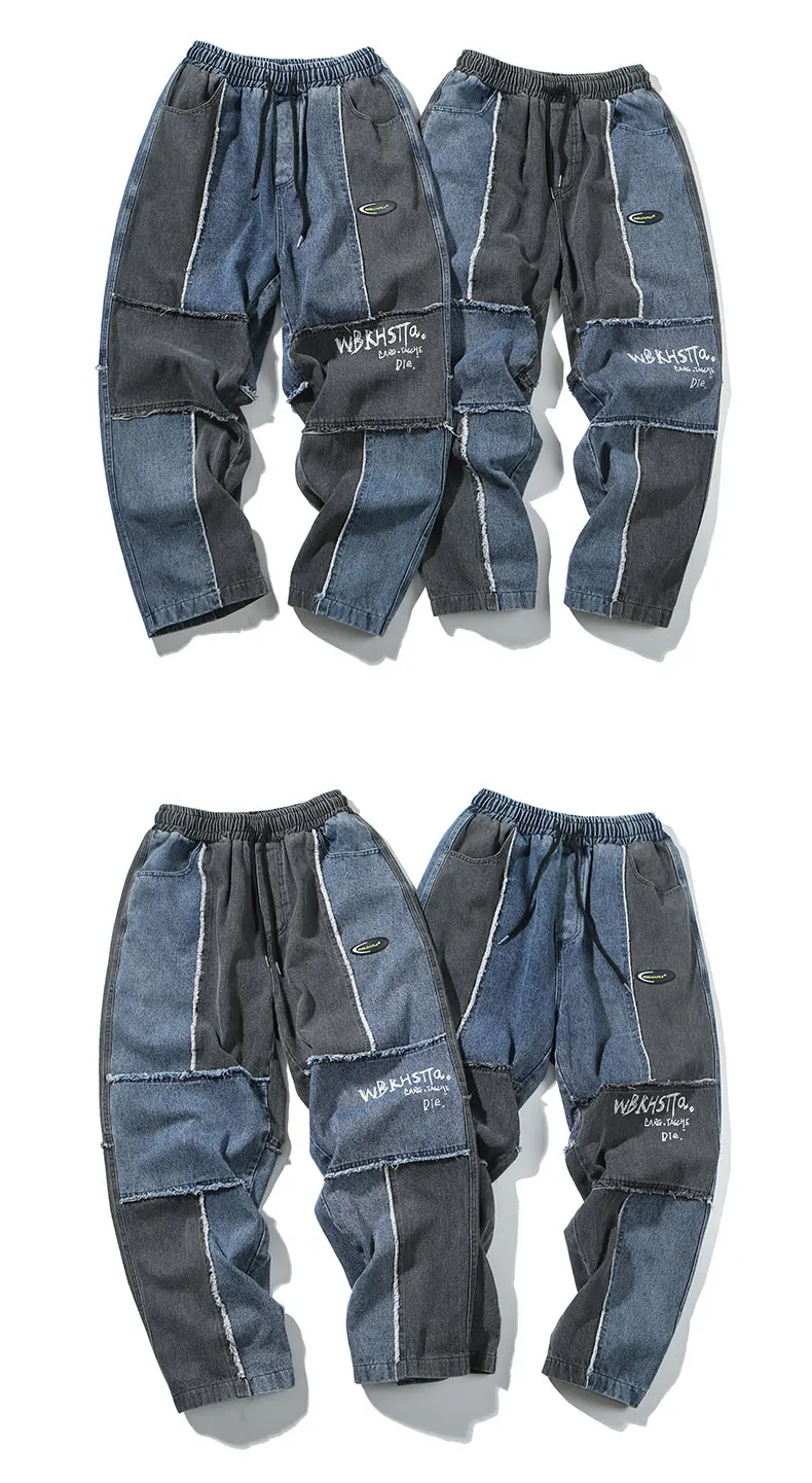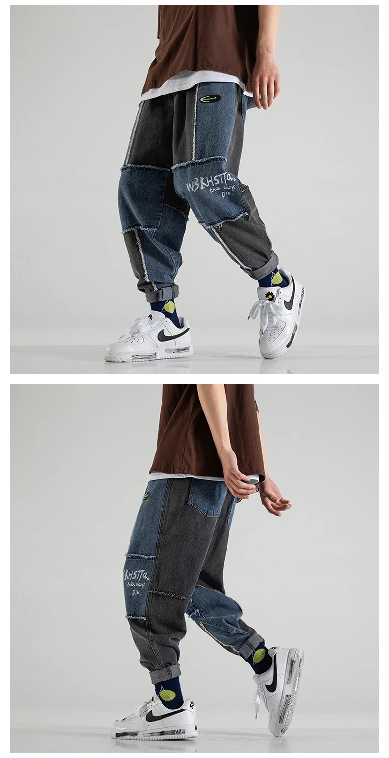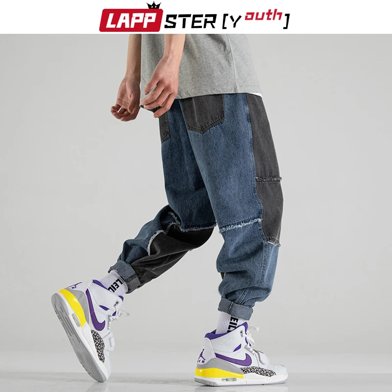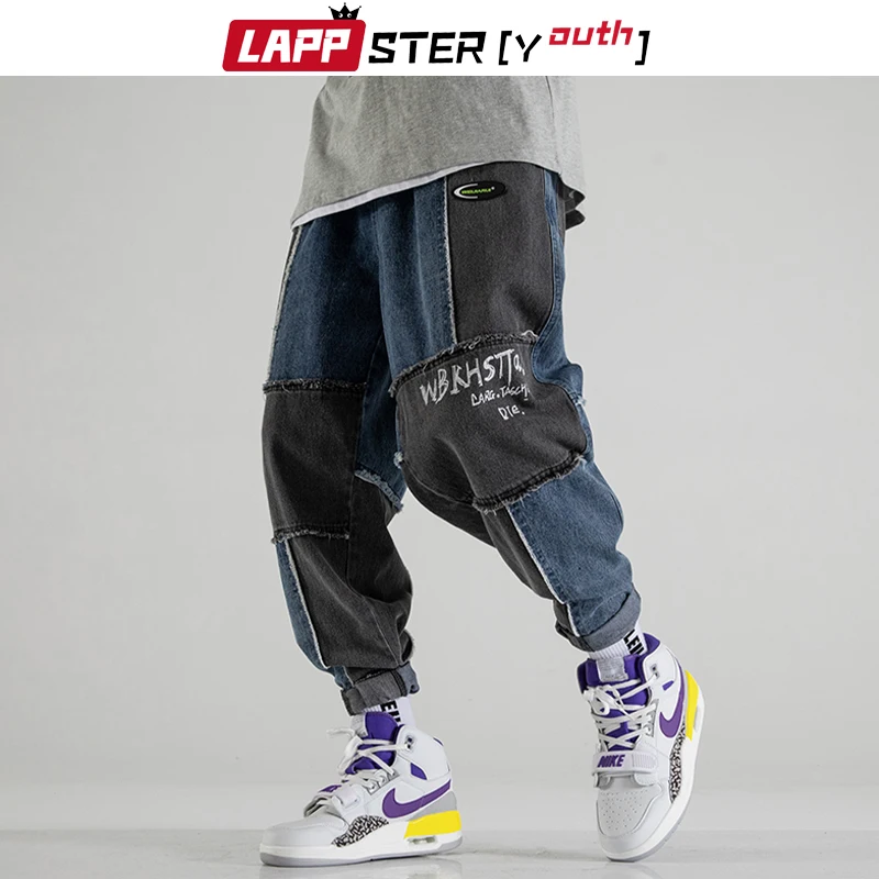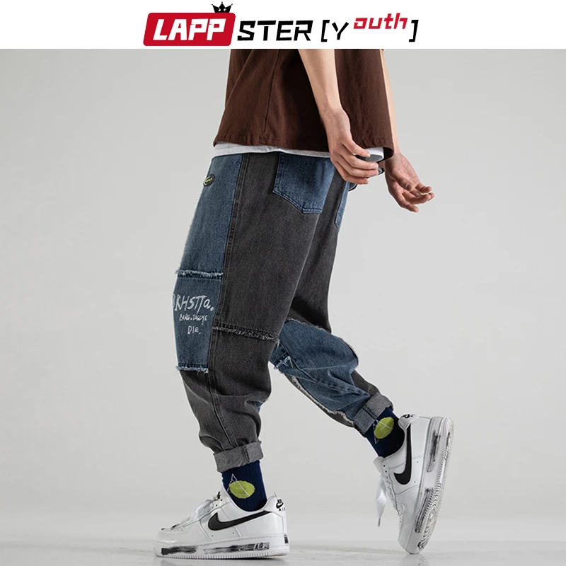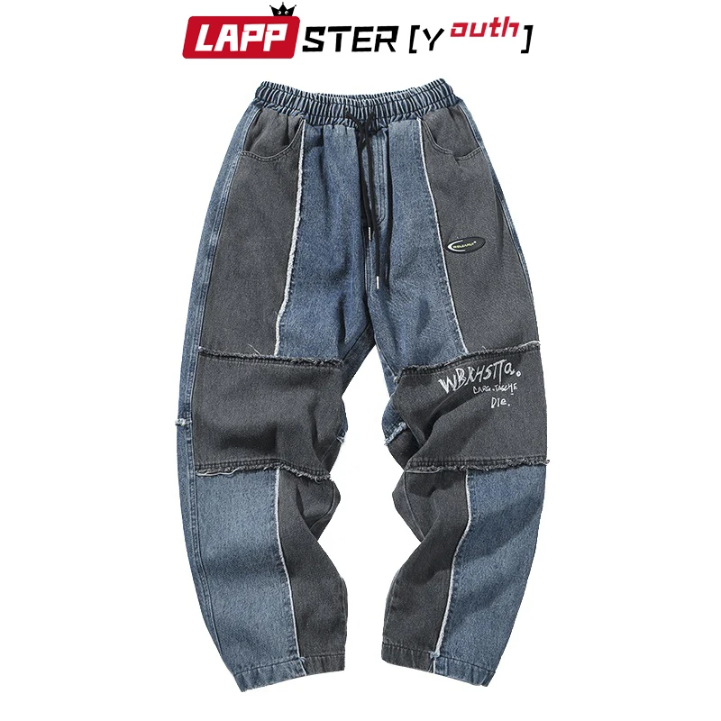 Джинсы LAPPSTER мужские с принтом, уличная одежда, пэчворк, корейская мода, брюки из денима, джоггеры с кулиской, 5XL, весна 2022