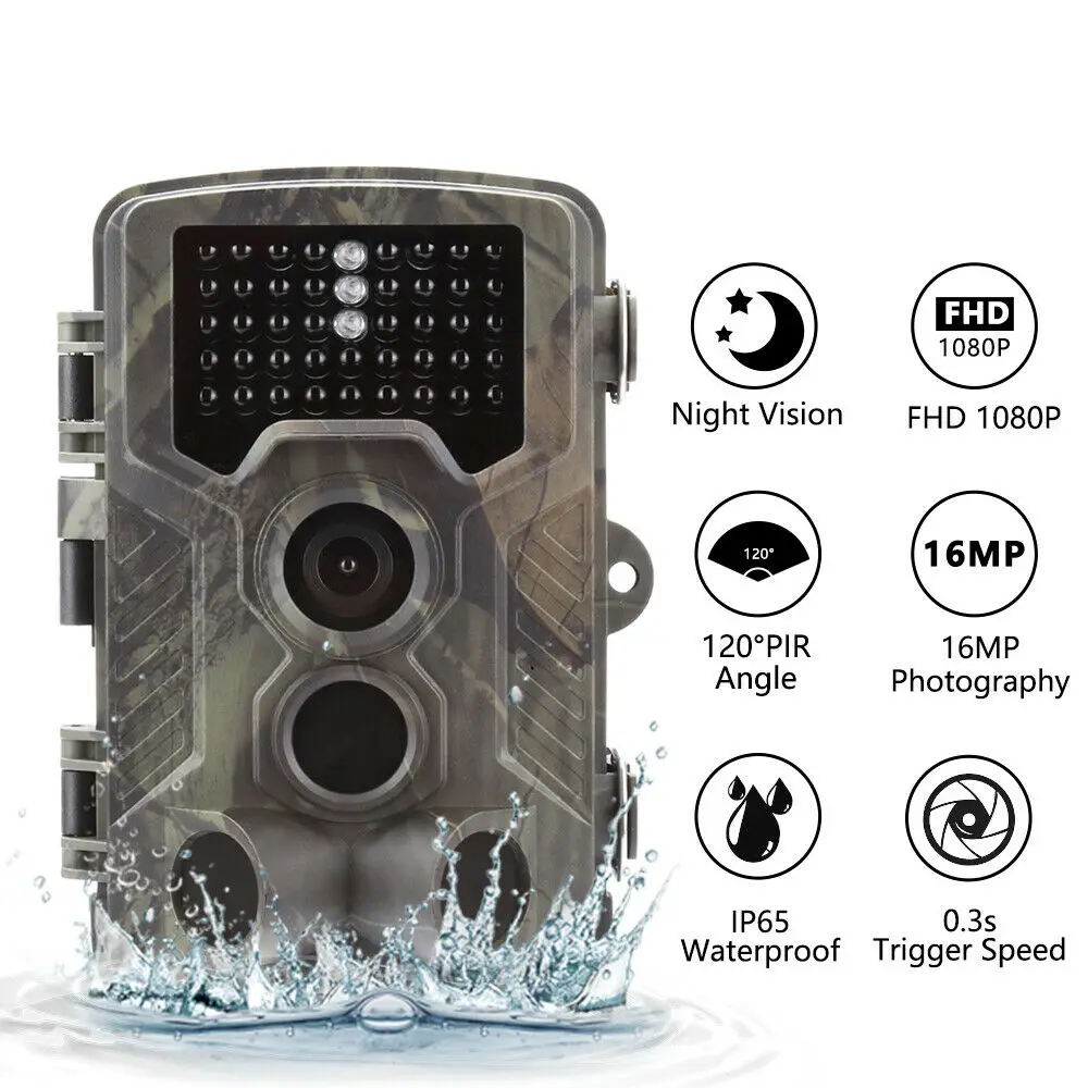 ОписаниеВодонепроницаемая охотничья камера 1080P HD-это Многофункциональная Универсальная камера, которая используется для охоты на открытом воздухе, наблюдения за животными, безопасности во внутреннем дворике, медицинской экспертизы, наблюдения за сельским прудом, наблюдения за лесом и других гражданских или научных исследований, или в качестве обычной цифровой камеры. Его скрытый, водонепроницаемый и пылезащитный дизайн и технология теплового инфракрасного датчика позволяют обнаруживать животных во всех погодных условиях на открытом воздухе, фотографировать или записывать условия отслеживания животных. Машина поставляется с инфракрасным излучением светодиодный освещения, нет мерцания в темное время суток, IP56 класс водо-и пыленепроницаемости: камуфляж оболочка обеспечивает незаметен в работе, так как легко замаскировать эффект и предотвращения воздействия.Особенности-Цвет: темно-зеленый.-Материал: пластик.-Размеры: 13,5x9x7,6 см.-Камера HD 16 МП. Разрешение HD 1080P предлагает вам четкие изображения и видео. Никогда не пропустите детали.-Ночное видение. Охотничья камера имеет 42 ИК-светодиодов, что позволяет делать четкие черно-белые фотографии/видео, не беспокойтесь о слабом светильник даже в темную ночь.-Обнаружение движения PIR. Датчик движения может обнаруживать любое движение людей или животных, когда они проходят мимо в сверхдальнем диапазоне обнаружения до 20 м/65 футов.-Степень защиты IP56, эффективно предотвращает попадание дождя, пыли и насекомых в камеру. Камуфляжная оболочка не только обеспечивает сильный эффект сокрытия и предотвращает воздействие, но и придает вашей камере классный вид.-Простота в эксплуатации. Поместите аккумулятор и sd-карту (оба не входят в комплект) в камеру, переключите камеру в режим тестирования и установите параметры. После установки переключитесь в режим on, а затем Начните запись.-120 градусов широкий диапазон записи. Камера для охоты может захватывать каждое действие животного с углом обнаружения 90 градусов.-Универсальный и многоцелевой: отлично подходит для охоты на свежем воздухе, наблюдения за животными, безопасности во дворе, медицинской экспертизы, наблюдения за сельским прудом, наблюдения за лесом и других гражданских или научных исследований, или как обычная цифровая камера.-Уважаемый покупатель, из-за светового эффекта, яркости мониторов, ручного измерения и т. д. могут быть некоторые незначительные различия в цвете и размере между фотографией и фактическим товаром. Искренне надеемся на ваше понимание! Спасибо!Технические характеристики-Датчик изображения 5 мегапикселей Цвет CMOS-Карта памяти TF до 32 Гб-Объектив F = 3,1; FOV = 90 °-Размер 135 мм * 90 мм * 76 мм-Дисплей 2,0 inch на тонкопленочных транзисторах на тонкоплёночных транзисторах-Диапазон обнаружения PIR 120 градусов-Расстояние ночного видения 65 футов/20 метров-IR светодиодный 42 Infared светодиодный s-Расстояние PIR 65 футов/20 метров-Триггер Скорость 0,5 во-вторых-PIR интервал 1/5/10/30 сек/мин (по умолчанию 1 сек)-Разрешение изображения 16MP/12MP/8MP-Несколько фотографий на одном обнаружении 1/3/6/9-Разрешение видео 1080P/720P/VGA-Формат файла JPEG/AVI-ISO Экспозиция: Авто/100/200/400-Пароль безопасности 4 цифровой контактный Код-Постоянный ток 0.2ма-Время работы 6 месяцев-Интерфейс TV out ; USB2.0; Micro SD карта; 6V 1.5A внешний разъем-Ремень для фиксации, Крепление для штатива-Рабочая темпера