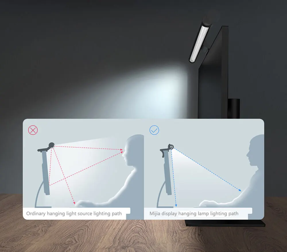 Подвесная лампа Mijia Display работает с вашим дисплеем и аккуратно подвешивает его, не занимая места на рабочем столе, обеспечивая совершенно новое освещение. * Этот продукт подходит для настольных мониторов или оправы толщиной ≤ 32 мм; Для мониторов толщиной менее 10 мм его можно стабильно повесить, И вам нужно держать его при регулировке угла (не рекомендуется для использования на ноутбуке).