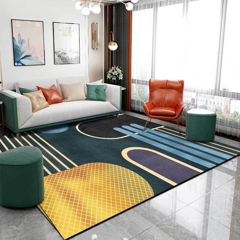 Современный коврик в стиле Моранди для гостиной, нескользящий коврик с абстрактной геометрической строчкой для спальни, прикроватной тумбочки, кухни, ванной