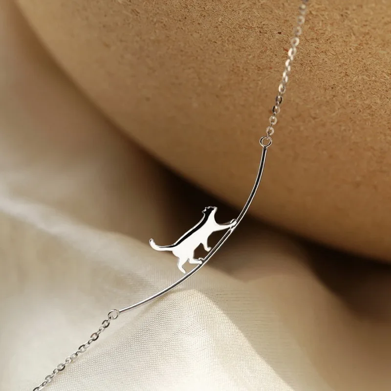 Изогнутое ожерелье с котом из серебра 925 пробы, простая индивидуал...