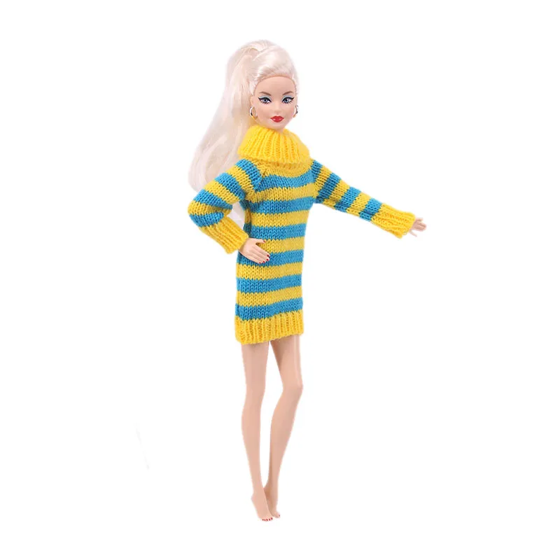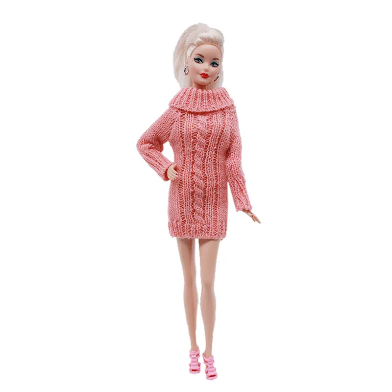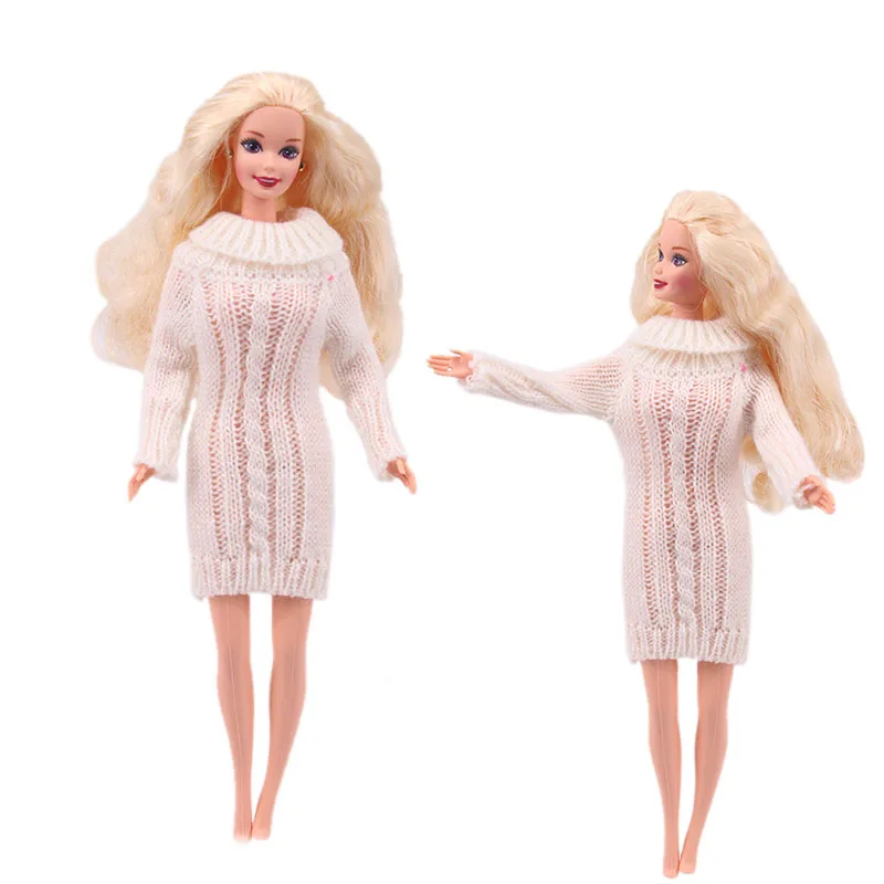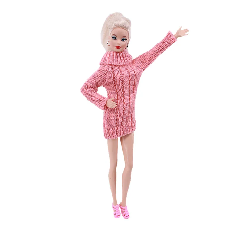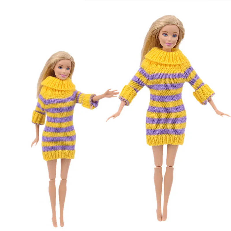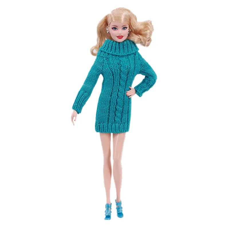 Аксессуары для одежды Барби, трикотажный свитер из чистого хлопка, платье, топы + туфли, аксессуары для кукольной одежды ручной работы