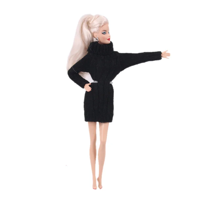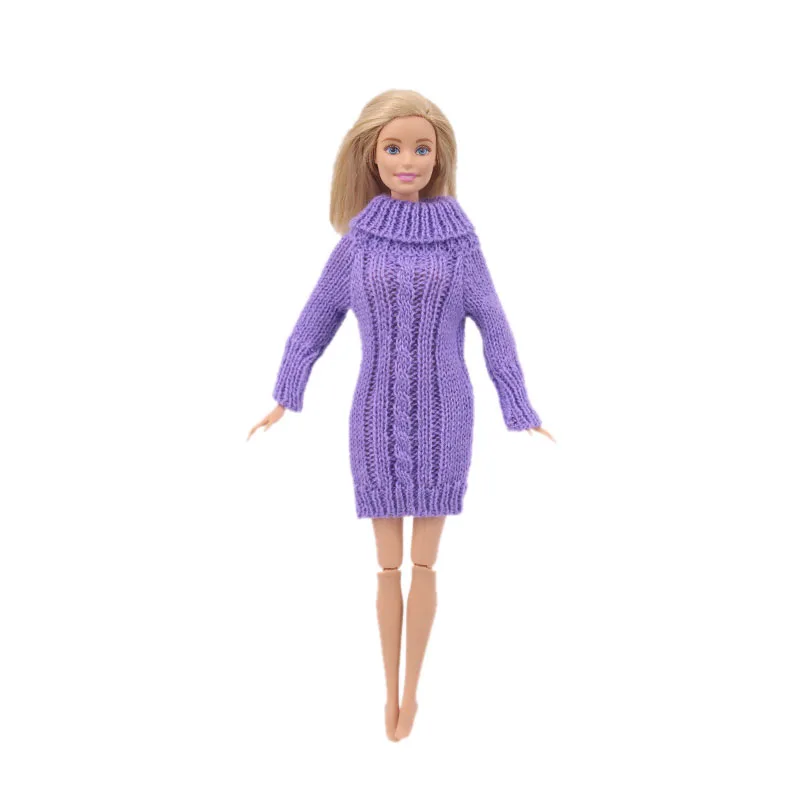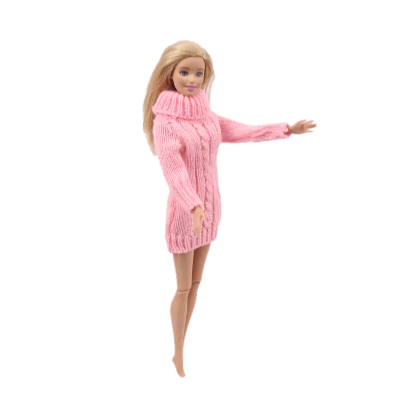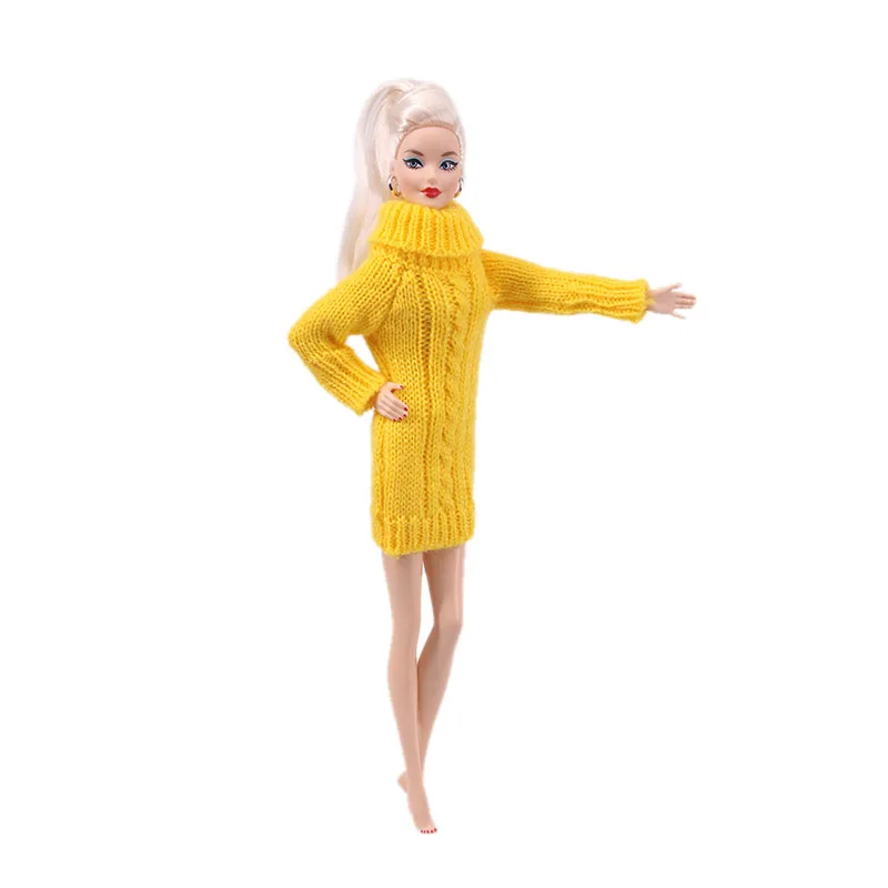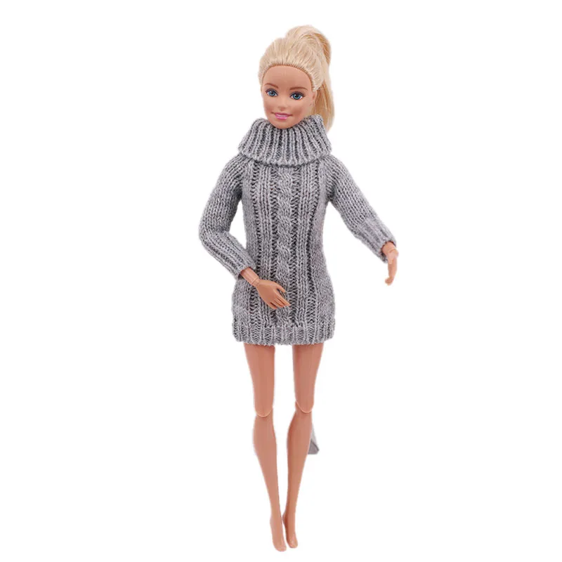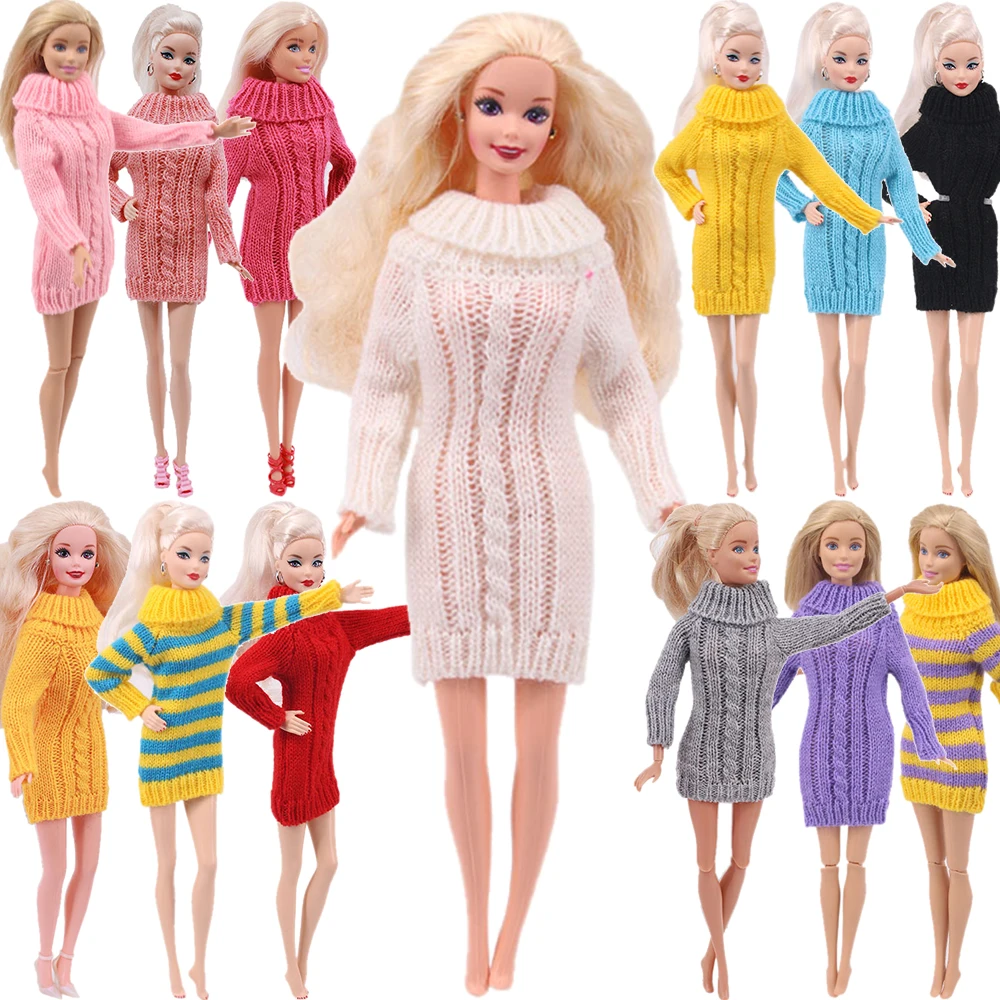 Аксессуары для одежды Барби, трикотажный свитер из чистого хлопка, платье, топы + туфли, аксессуары для кукольной одежды ручной работы