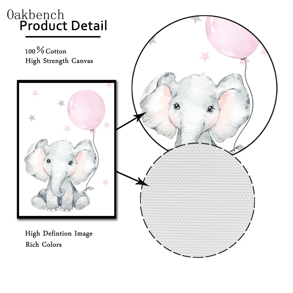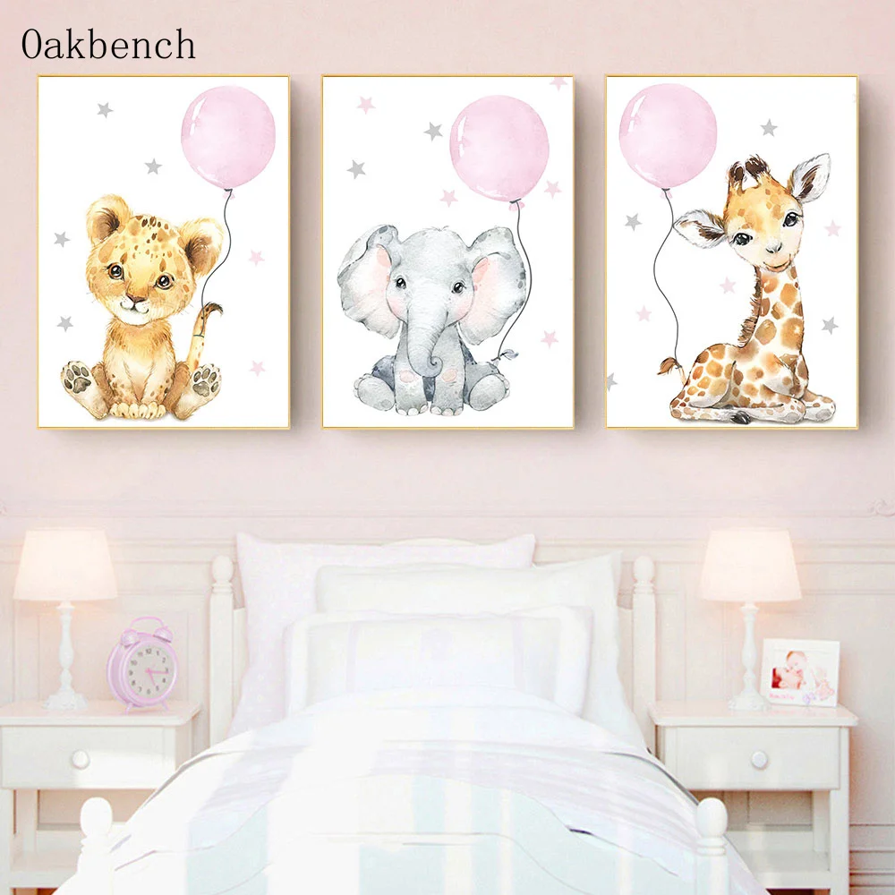 Картина на холсте для детской комнаты Тигр Слон плакат панды воздушный шар животные Художественная печать скандинавские настенные картины украшение для спальни девочки