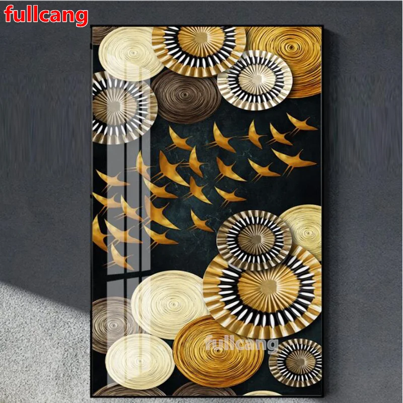 Алмазная живопись сделай сам, абстрактная Золотая круглая вышивка с рыбками, мозаика большого размера 5 d, полная выкладка квадратными стразами 3d, круглая вышивка JX2071