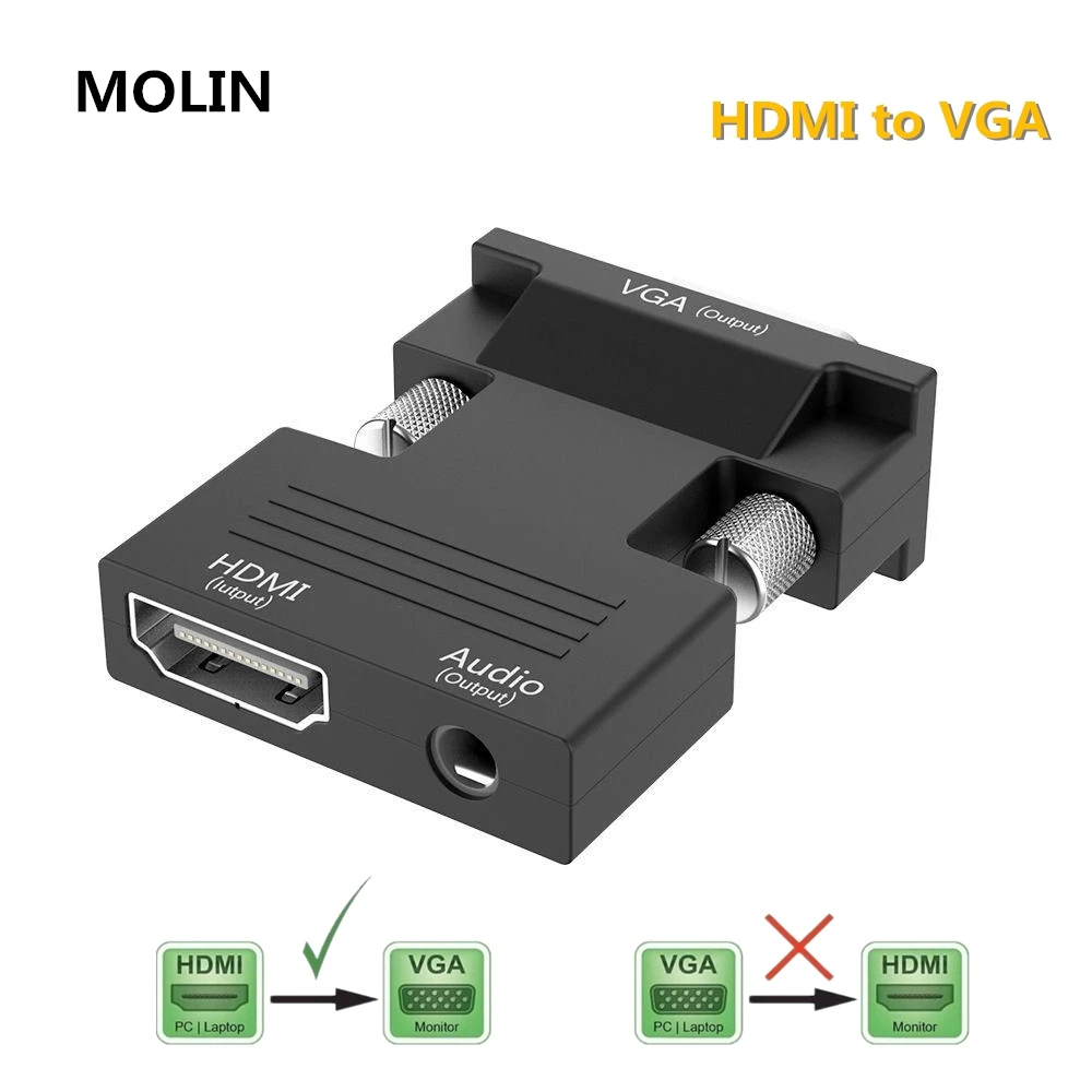 Переходник HDMI (разъем)VGA (штекер), поддержка 1080P, для ПК, ноутбука, телевизора, монитора, проектора с аудиокабелем 3,5 мм
