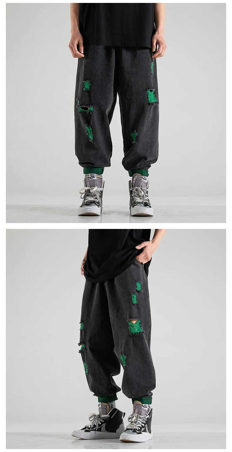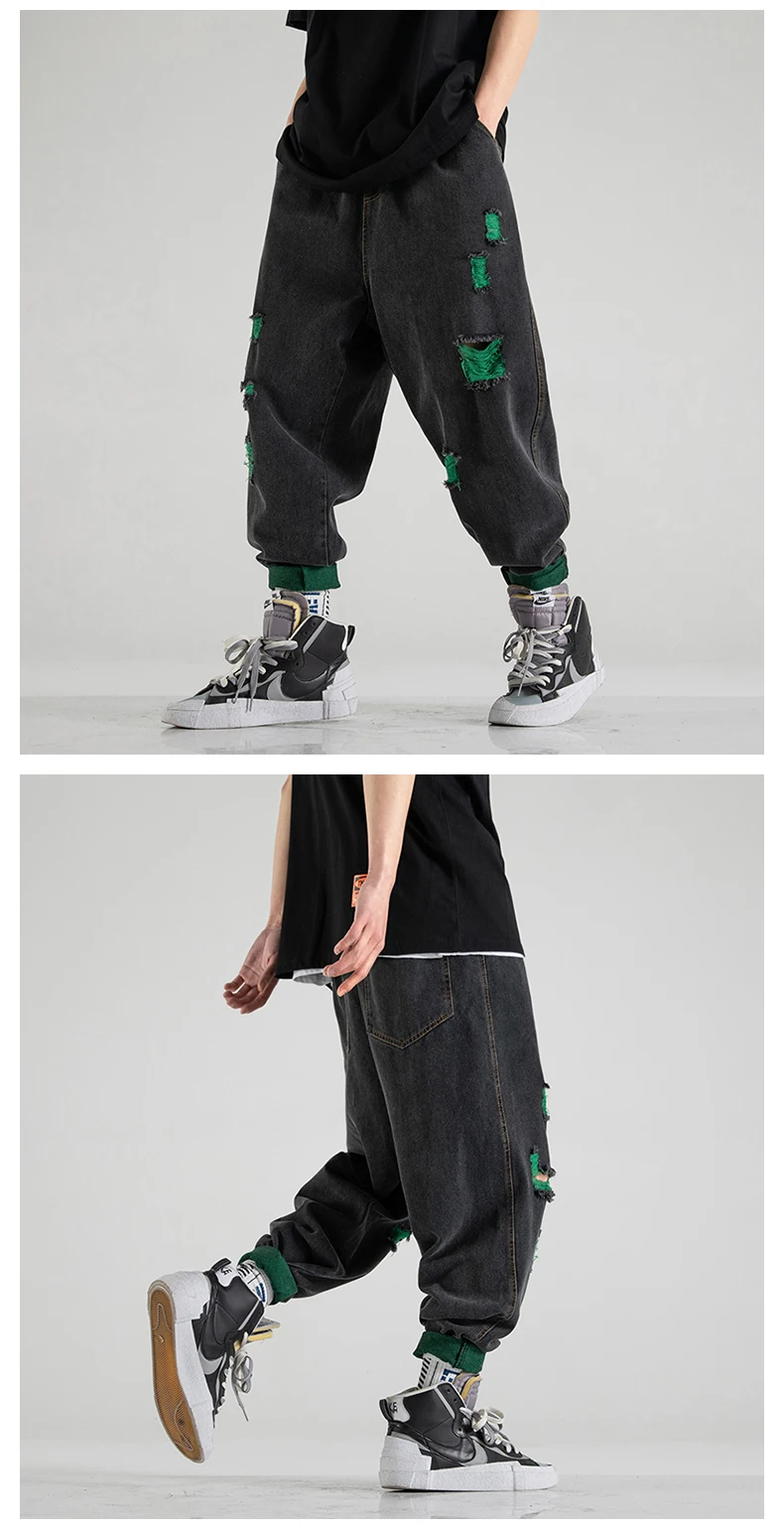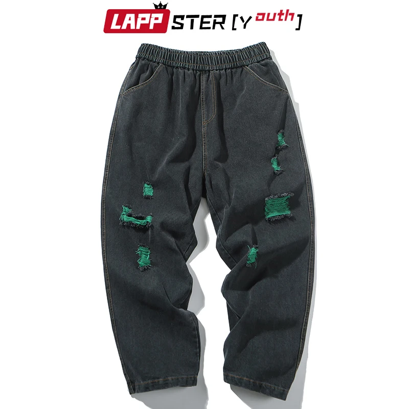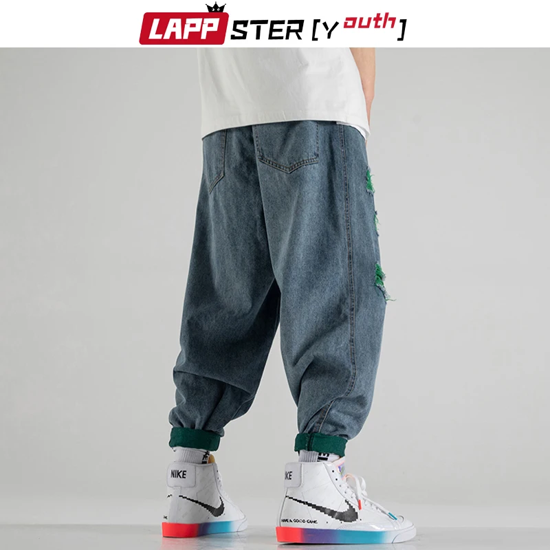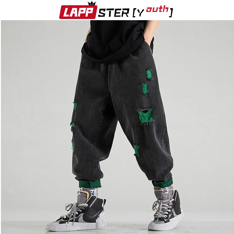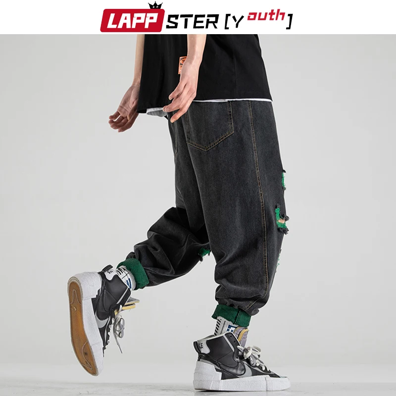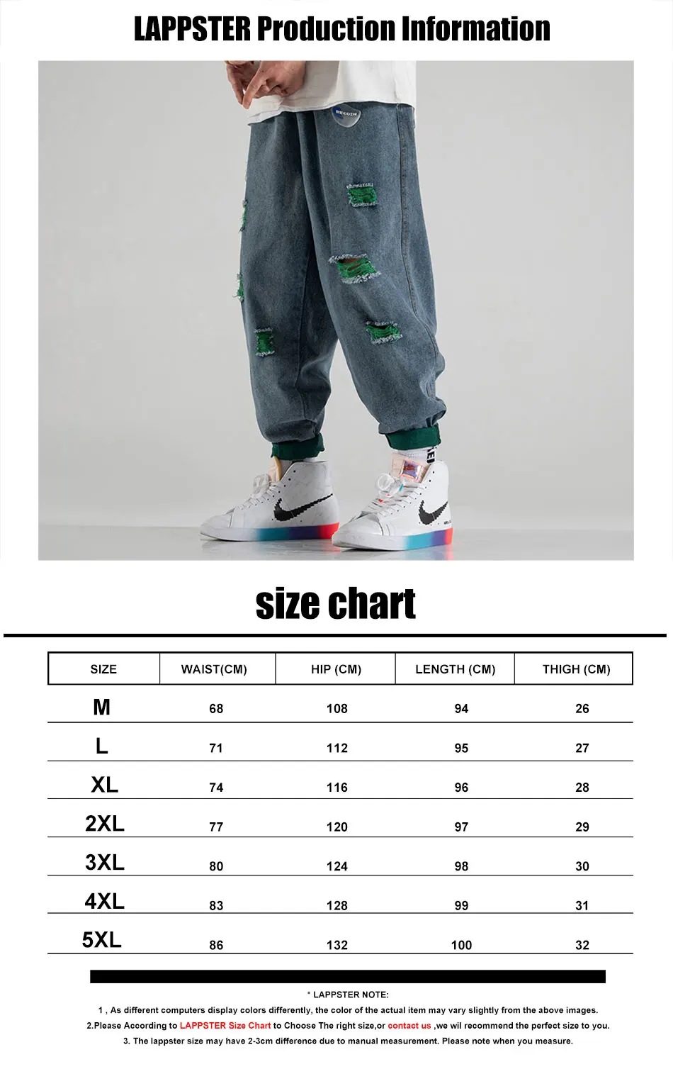 Джинсы-карго LAPPSTER мужские рваные, винтажные брюки из денима в стиле пэчворк, уличная одежда в Корейском стиле, Джоггеры в стиле Харадзюку, 5XL, весна 2022