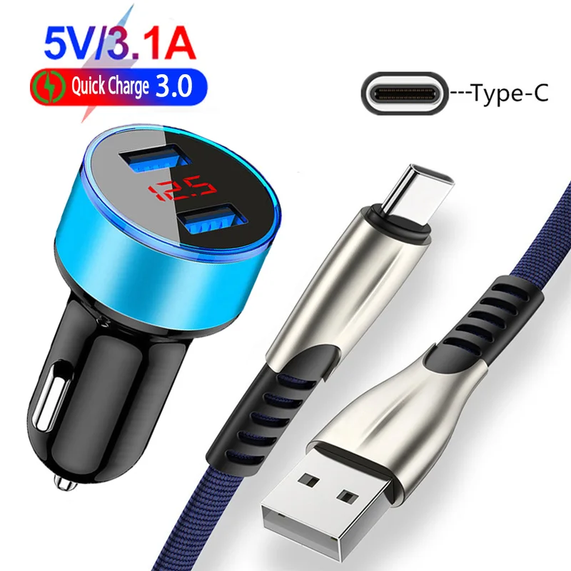 Автомобильное зарядное устройство с USB-кабелем типа c, 3,1 А, двой...