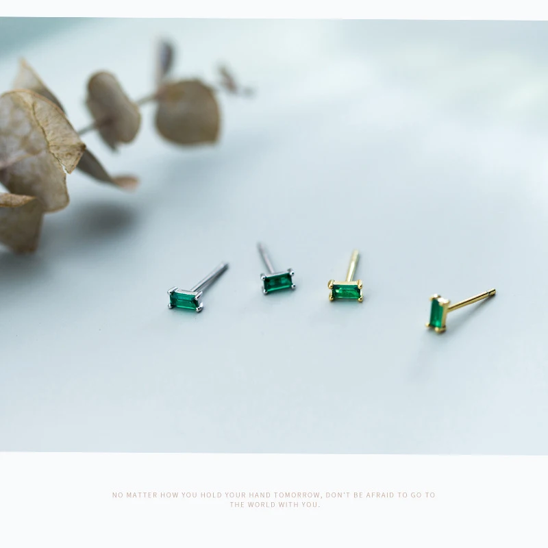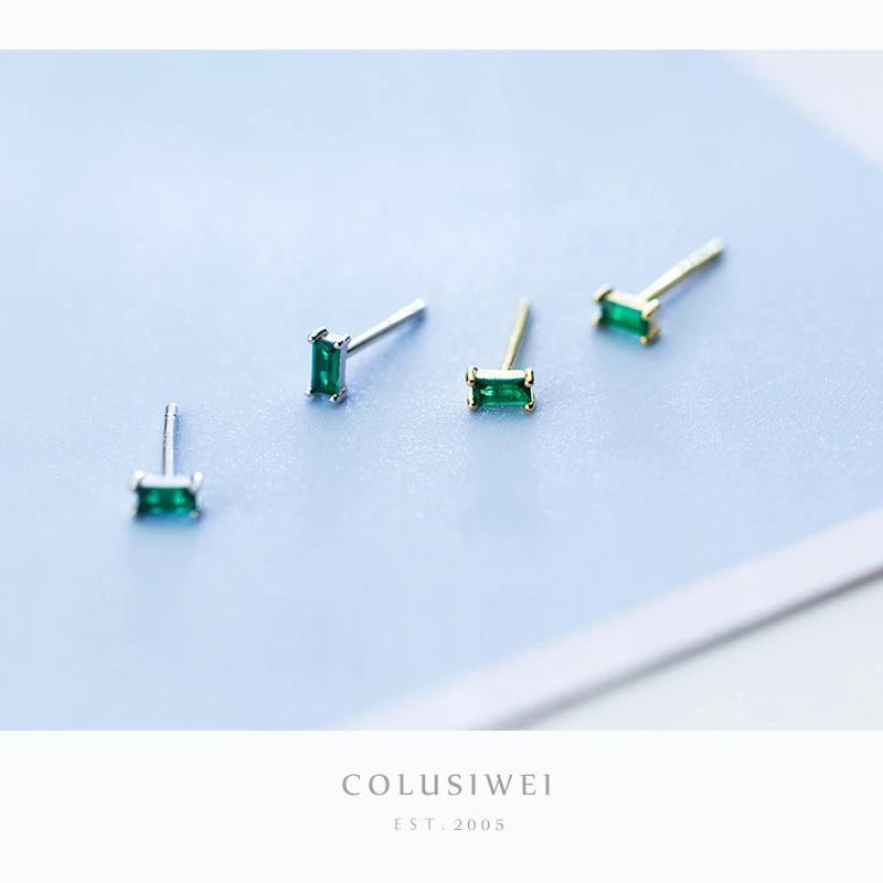 Colusiwei изумрудная огранка зеленого цвета с украшением в виде кристаллов маленький крошечный гвоздик серьги 925 стерлингового серебра прямоугольник в виде капель с кристаллами в форме женские свадебные украшения