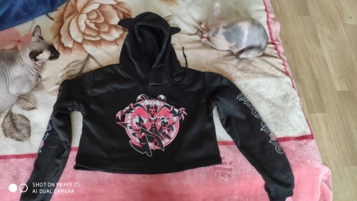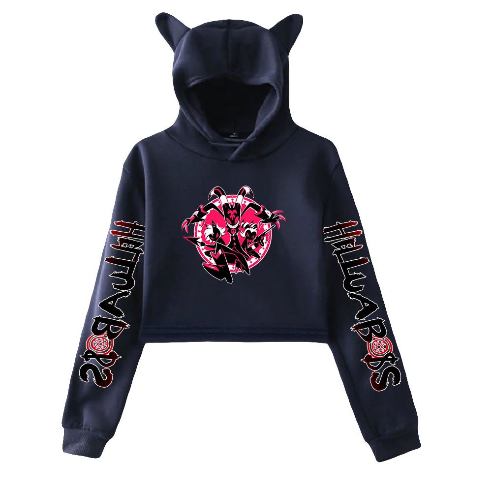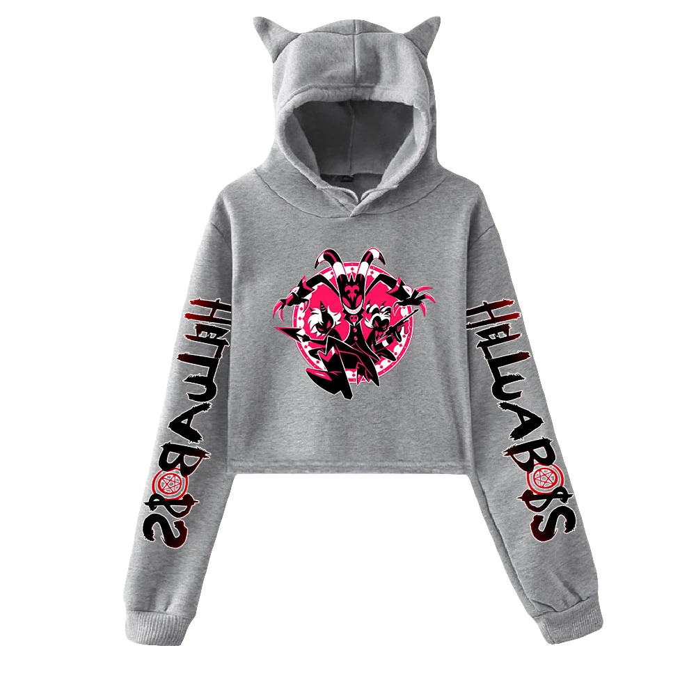 Helluva принт Boss Кот укороченные толстовки для девушек с длинным рукавом пуловер с капюшоном короткие топы милые сексуальные свободные стильные