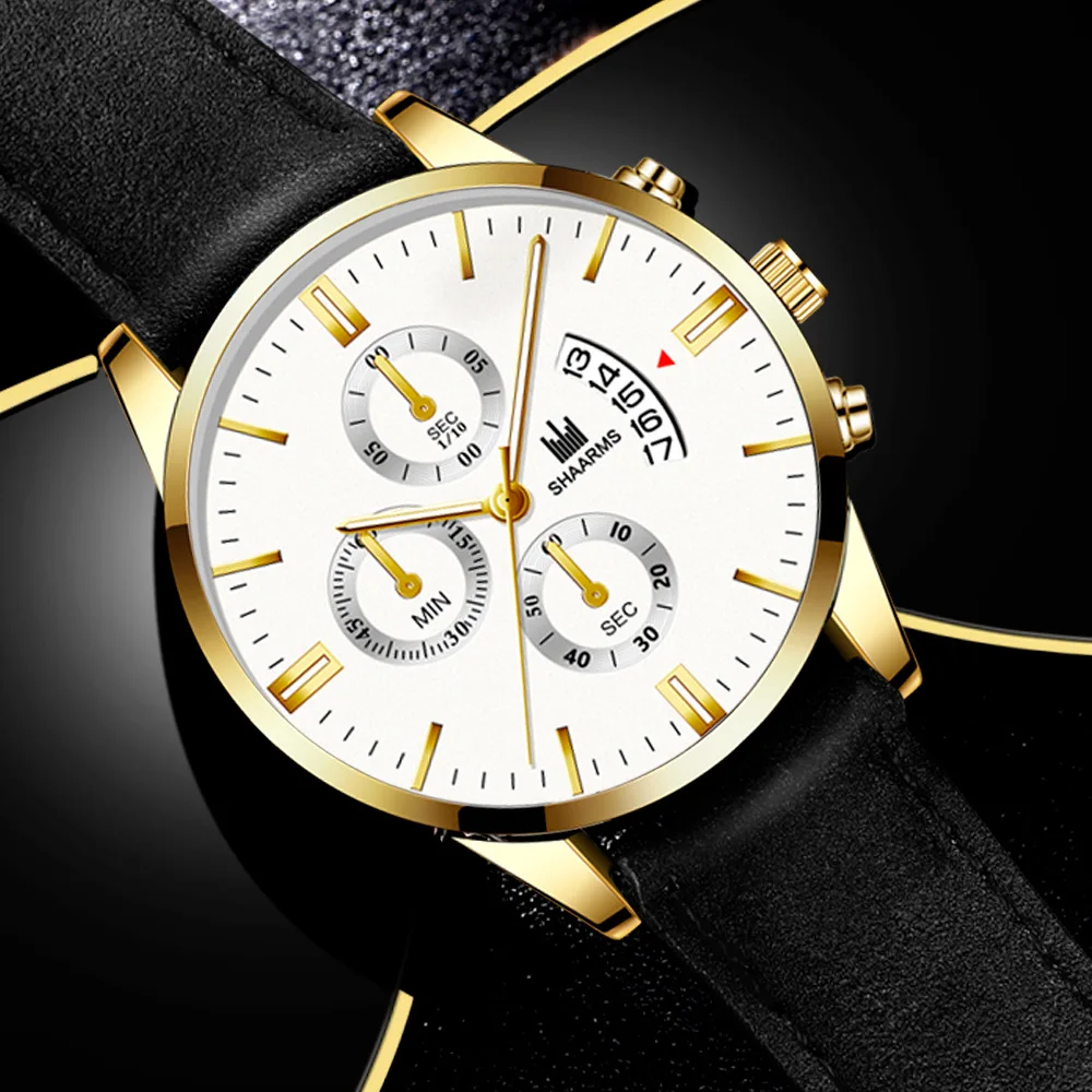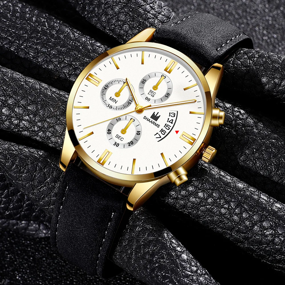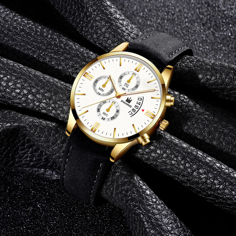 Золотые часы, мужские Роскошные наручные часы, водонепроницаемые мужские часы с множеством циферблатов, кожаный ремешок для часов, деловые часы montre homme