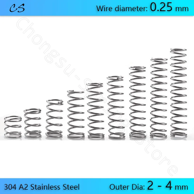 10 шт. 0,25 мм компрессионная пружина 304 A2 нержавеющая пружина проволока диаметром 0,25 мм внешний диаметр 2 2,5 3 4 мм Длина 5 10 15 20 25 30 - 45 мм