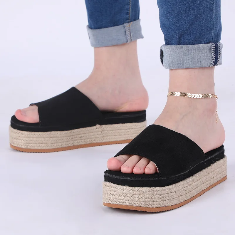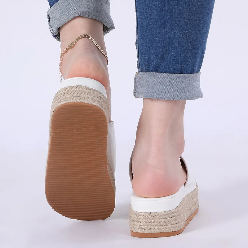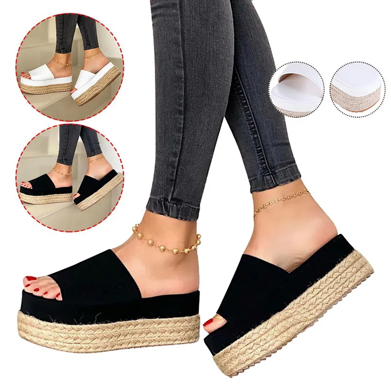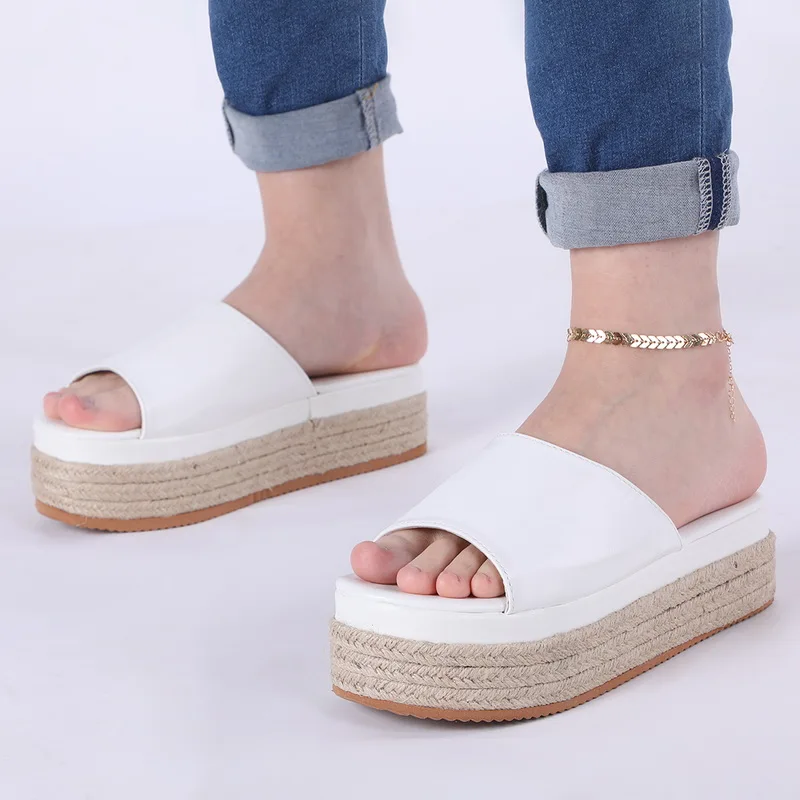 Шлепанцы женские на платформе, искусственная кожа, однотонные сандалии с открытым носком, летние шлепанцы, сланцы, Уличная обувь, черный белый цвет