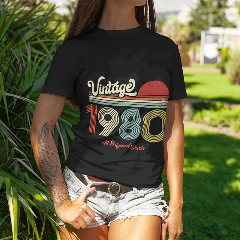 Винтажные 1975 женская футболка 46th для дня рождения, Harajuku фут...