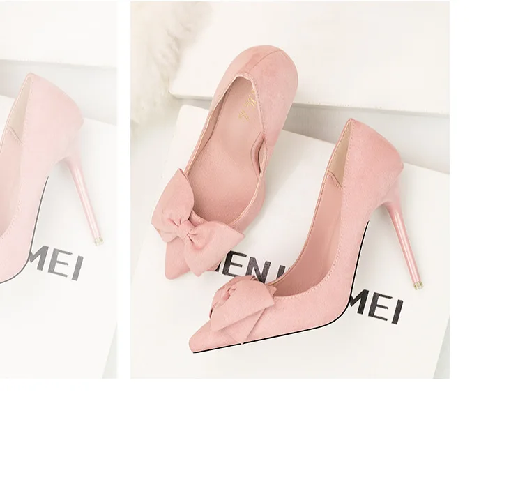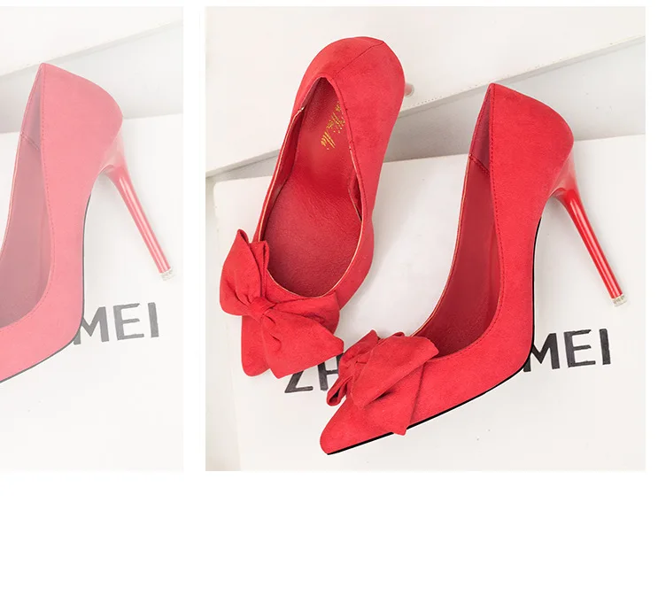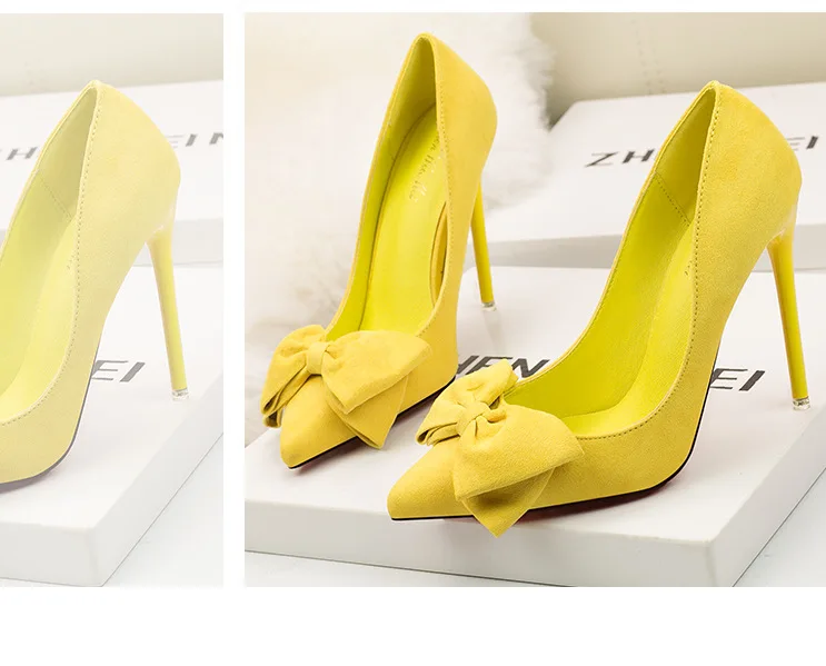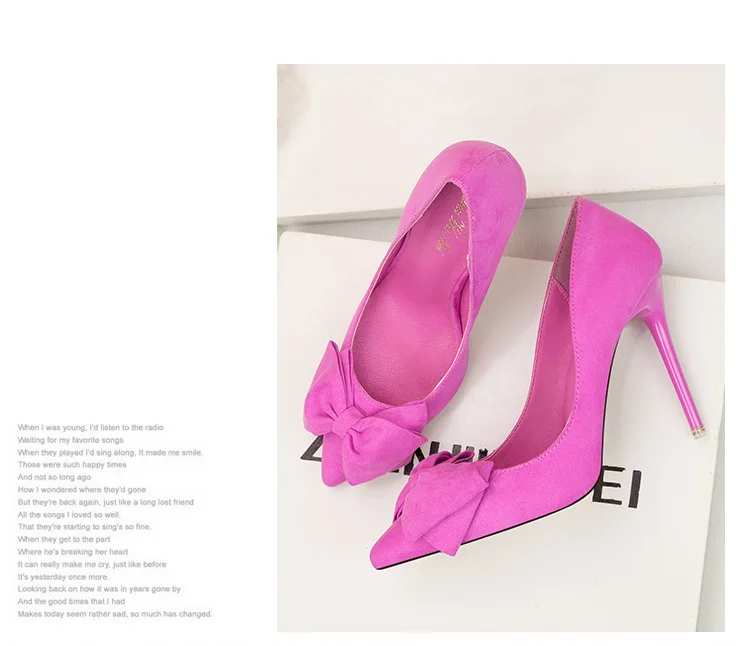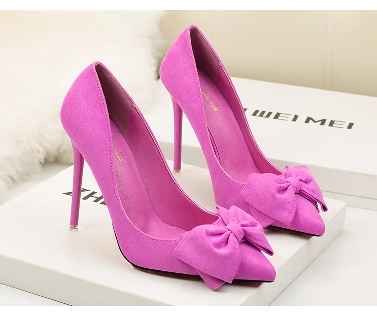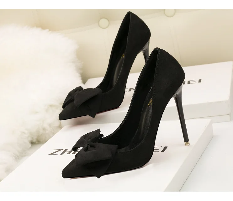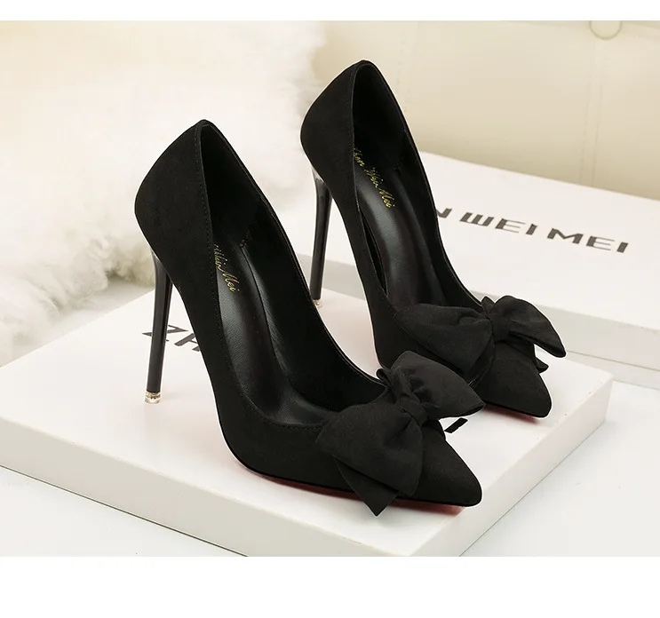 Туфли-лодочки женские на шпильке 11 см, флоковые, без застежки, заостренный носок, с бантиком-бабочкой, туфли-лодочки на высоком каблуке, Размеры 35-42