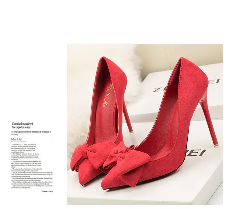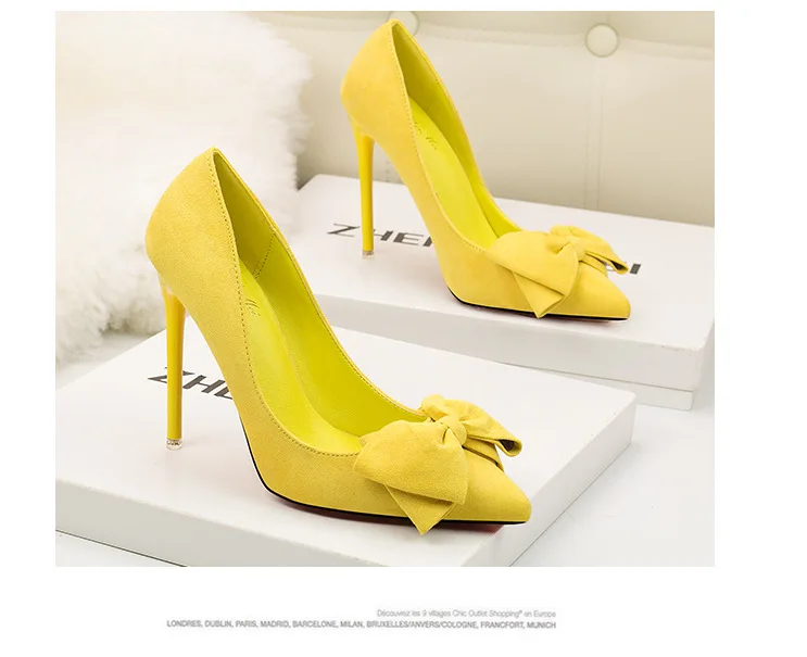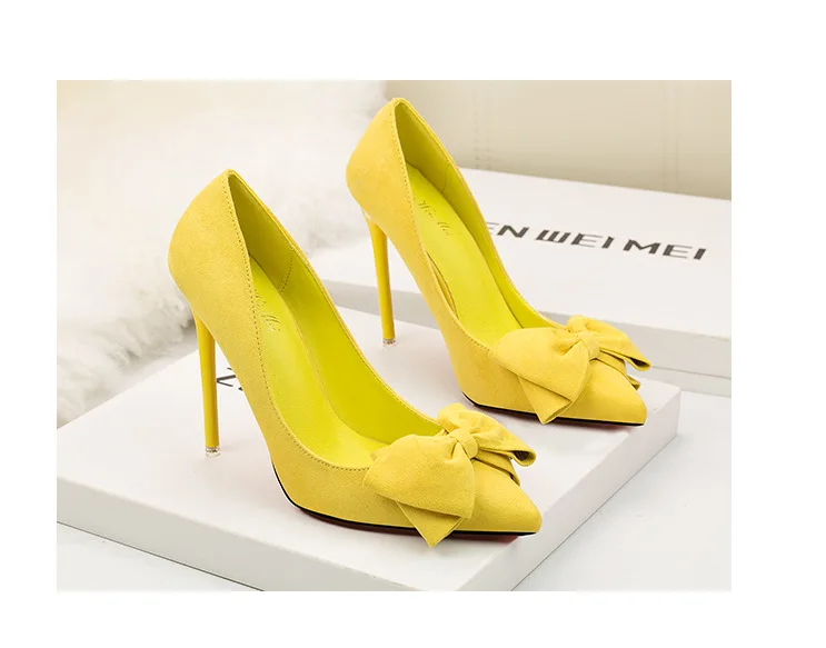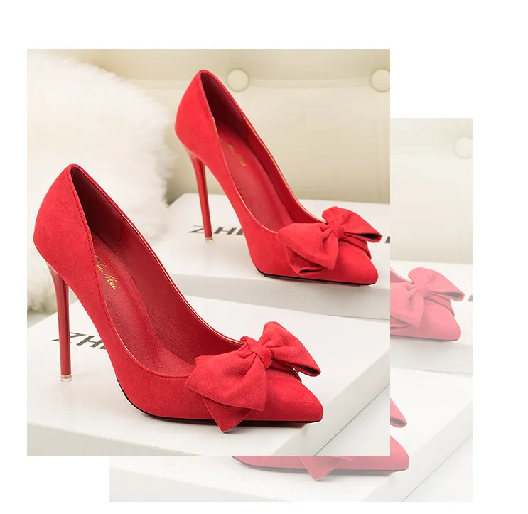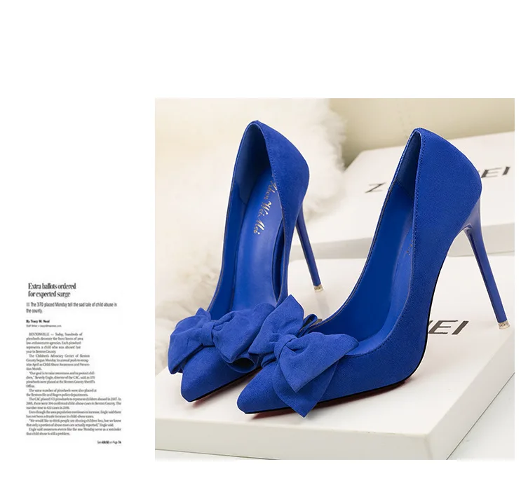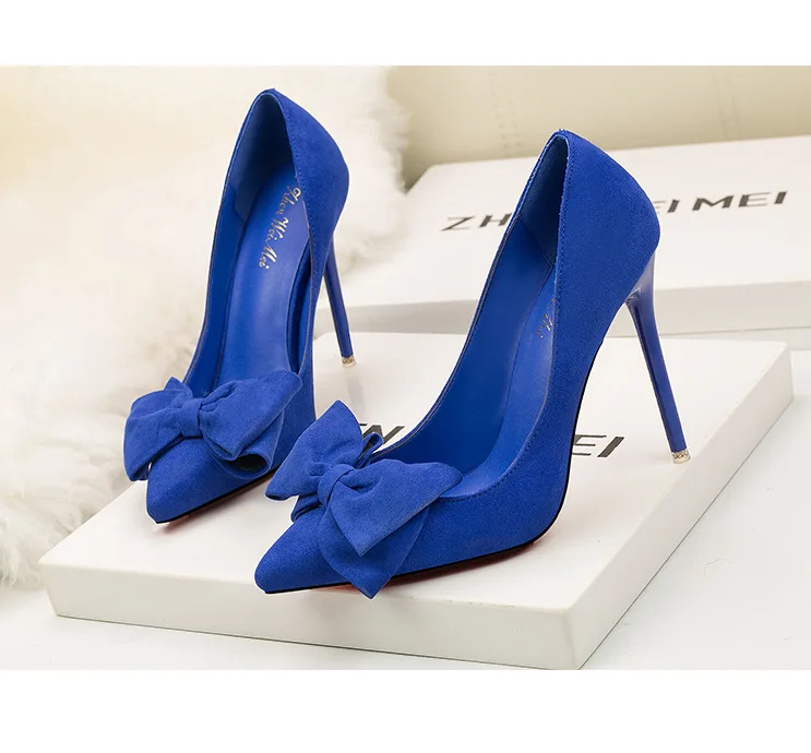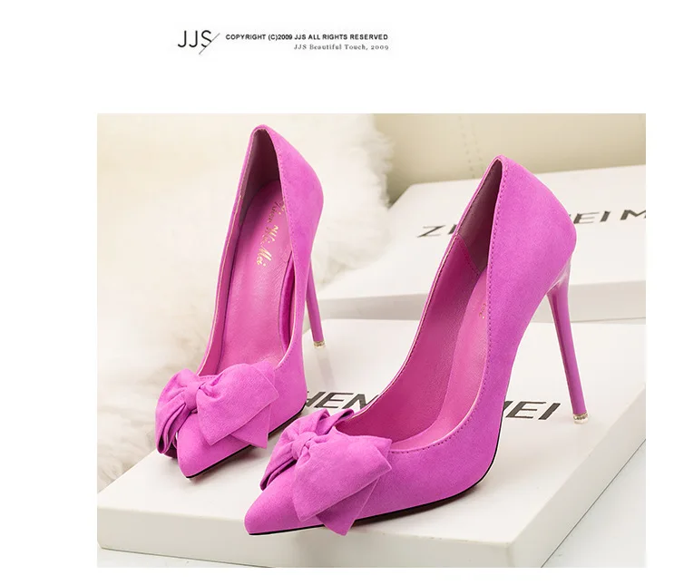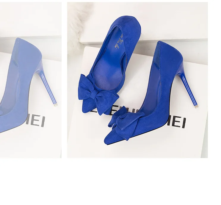 Туфли-лодочки женские на шпильке 11 см, флоковые, без застежки, заостренный носок, с бантиком-бабочкой, туфли-лодочки на высоком каблуке, Размеры 35-42