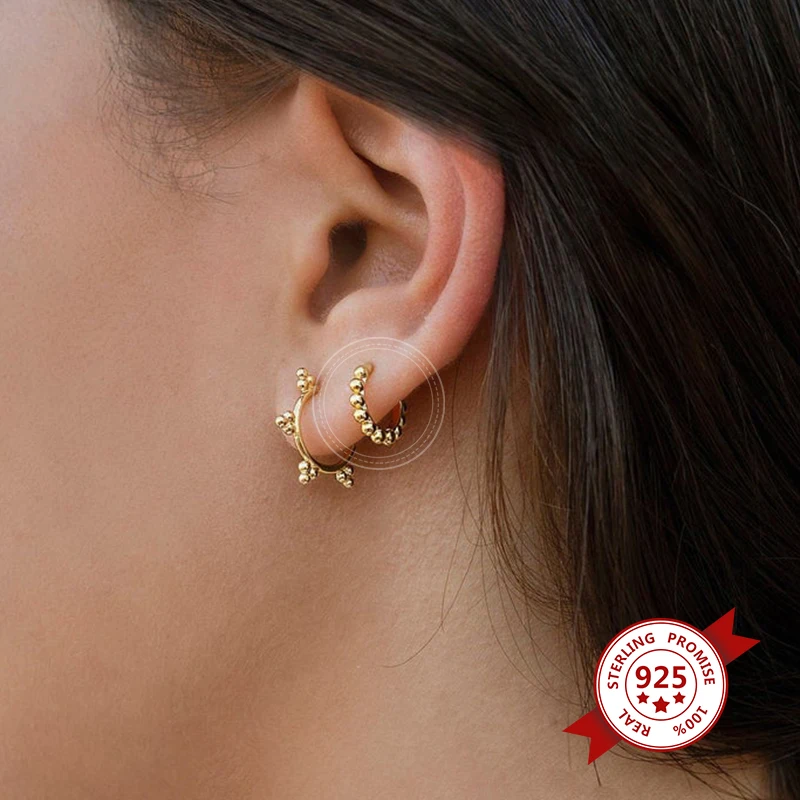 EarringsMini Huggies Hoops Circle Beaded Circle Earring