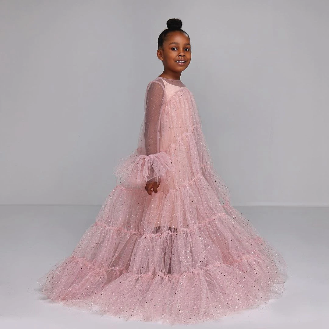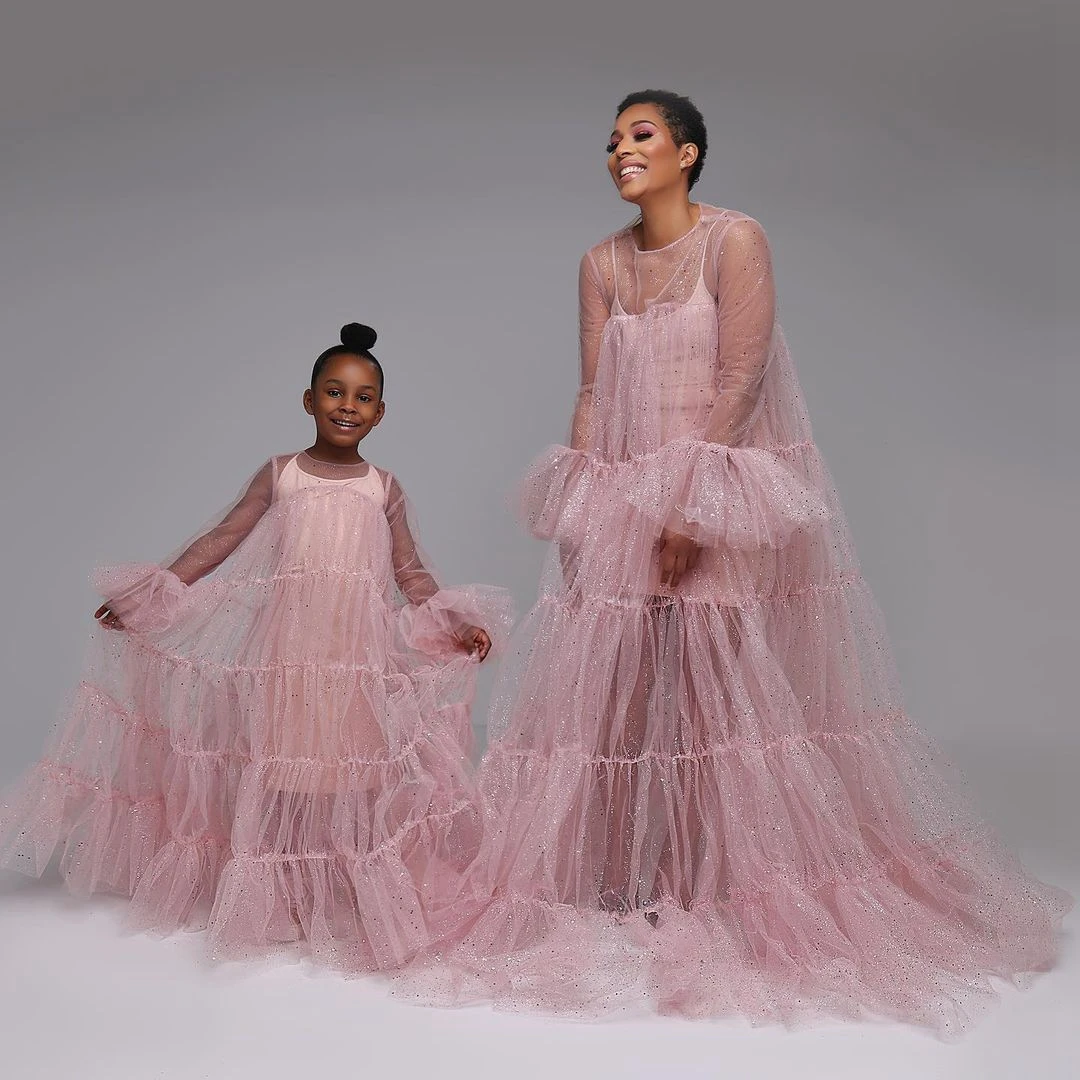 Тюлевое платье для мамы и ребенка, прозрачное, с длинными рукавами, для фотосессии