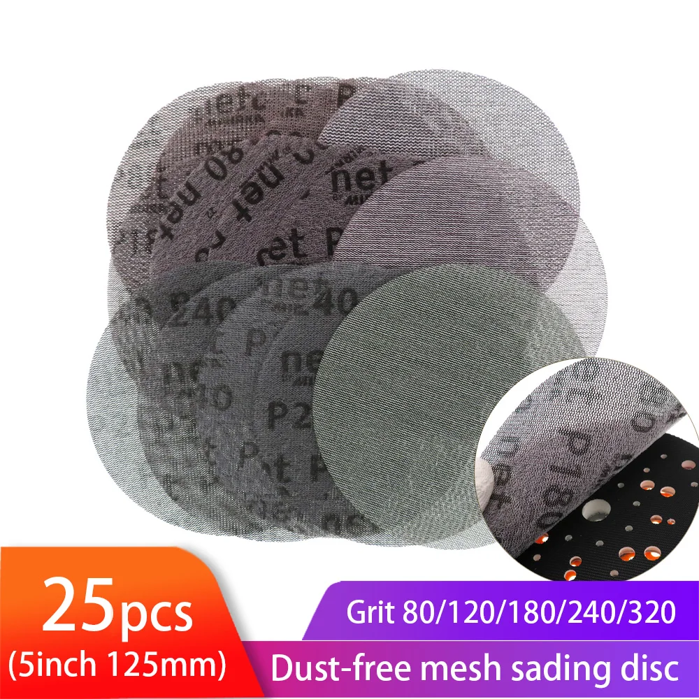 25 шт. 5 дюймов 125 мм сетчатые пылезащитные шлифовальные диски с крючком и петлей круглые абразивные наждачная бумага 80-320 Грит декоративная бумага для автомобиля