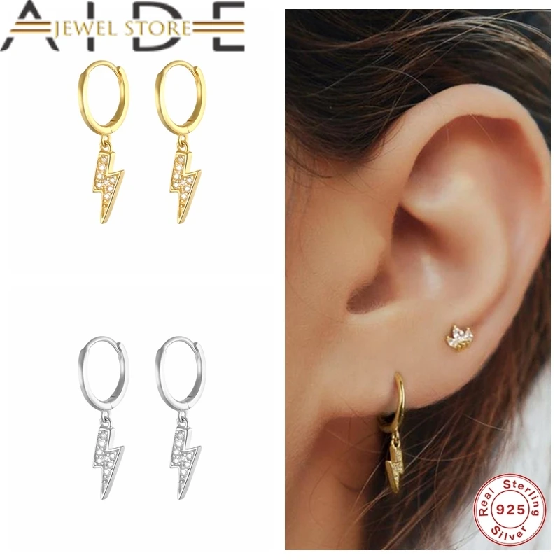 Aide плата де лей 925 pendientes кубического циркония серьги в виде колец, золотой и серебряный цвет Lightning серьги-подвески для женщин ювелирные изделия