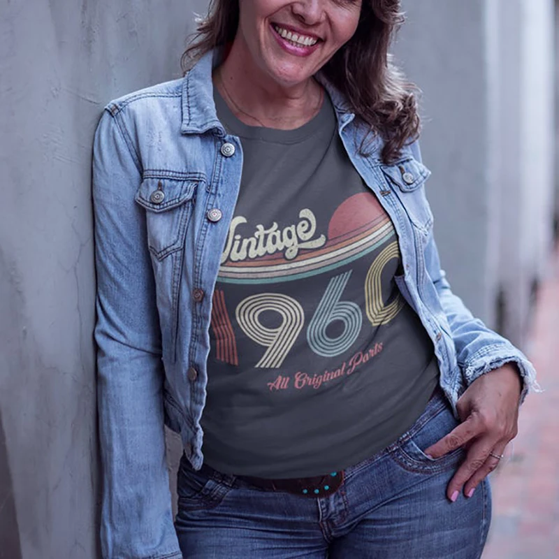 Винтажная Футболка 1960-1969, женская, 52-61, 60 лет, 61st, 60-й, идея подарка на день рождения, мама, жена, топ для матери, 1965, футболка