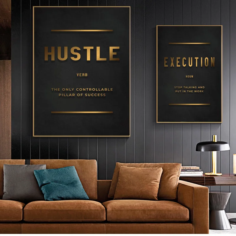 Абразивный материал на Hustle исполнение вдохновляющие холст для живописи золотого Цитата Плакаты принты настенные картины, офиса, дома