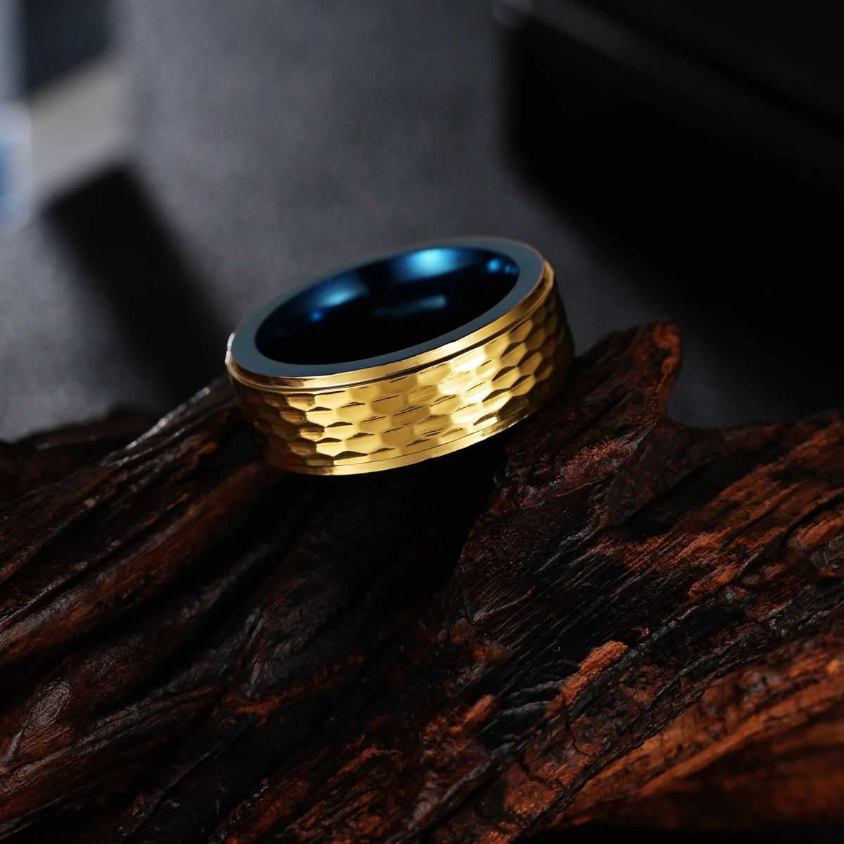 Обручальное кольцо с вольфрамовый Молот желтого золота для мужчин и женщин, многограненый Чеканный матовый материал, 8 мм