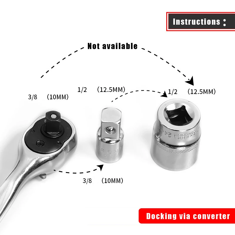 Гаечный ключ с трещоткой, адаптер с головкой конвертера 1/2 "с большой головкой до 3/8" со сталью 1/4 "до 1/4" до 1/2 "до 3/8"