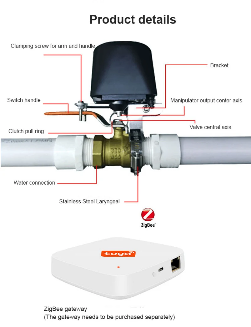 Примечание: водяной клапан не может использоваться отдельно, он должен быть подключен к шлюзу tuya Zigbee.